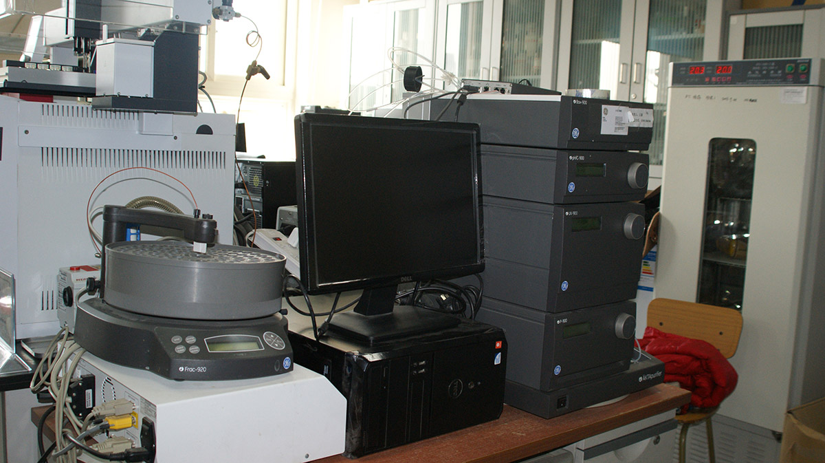 AKTA purifier 是一个快速分离肽、核酸、蛋白和天然产物的全新液相色谱系统,其配套的色谱柱和方法模板可以进行凝胶过滤、离子交换、疏水层析、反向层析和亲和层析,适合从一般科研检验到药品质检或临床分析应用。本台仪器还配有组份收集器Fra-920,具有峰收集功能,可使用UNICORN软件控制。 AKTA purifier快速纯化系统是GE医疗集团的Amersham Biosciences公司产品,可以操作各种层析技术,适合分离和纯化各种生物分子,包括天然蛋白质,重组和融合蛋白质、肽、寡核苷酸、质粒、病毒、抗生素、生物碱等等,适合操作肽图等精确分析和小量制备应用,最适于纯化设计实验。