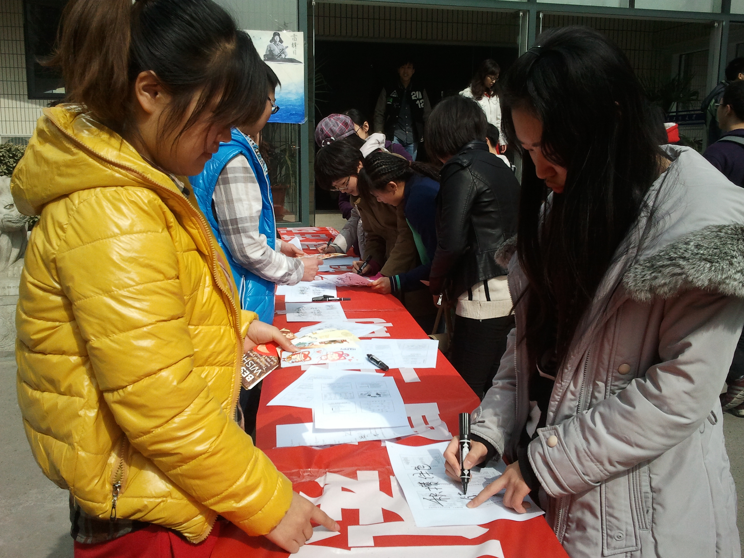 在活动当天,由十大正规买足球网站员工会组织部几位干事在龙月广场号召同学们写宣传标语,一起投入到保护环境、学习雷锋活动中。活动当天风很大,但阻挡不了同学们学习雷锋,立誓明志的决心。上课时间虽然很紧,但同学们依然为了此次活动停驻了匆忙的步伐,展现出对学习雷锋的热情。