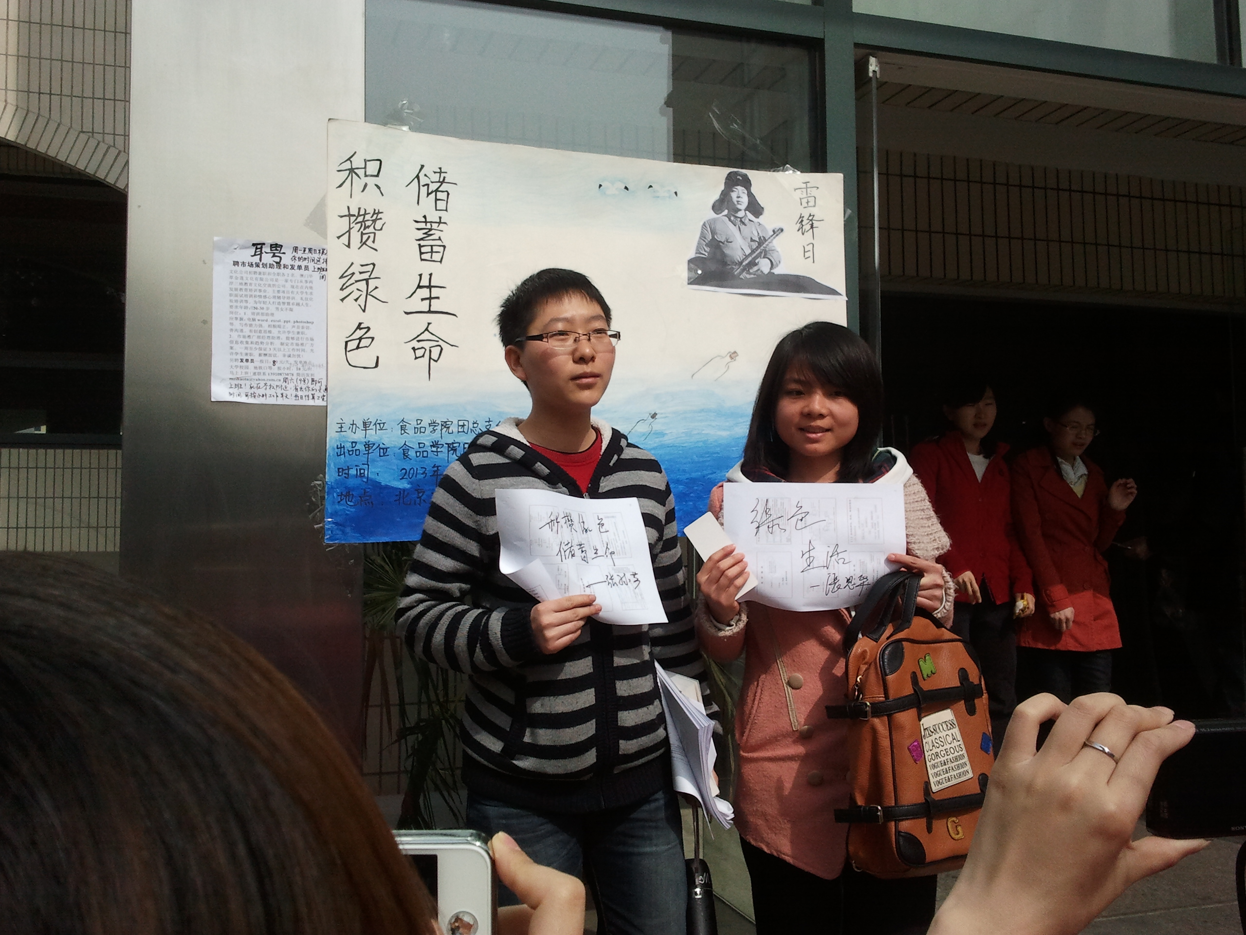 活动旨在宣传绿色生活理念,号召大家一起学雷锋,做的不只是人民的雷锋更是地球的绿色环保雷锋。活动过程中同学们积极主动参与,纷纷签下了自己的绿色宣言,决心要做绿色公民。