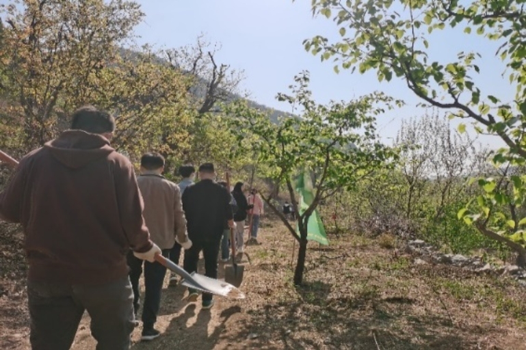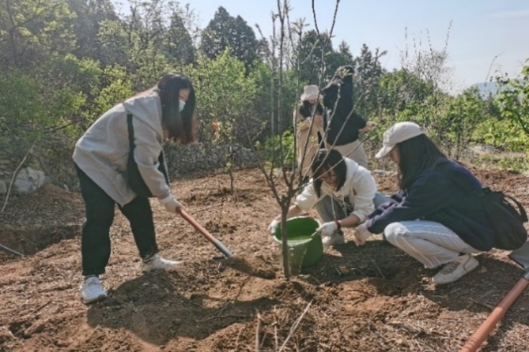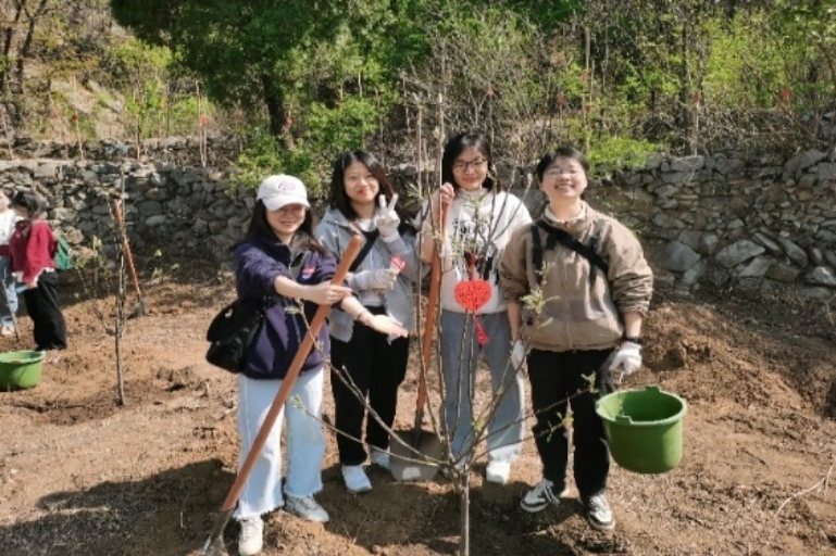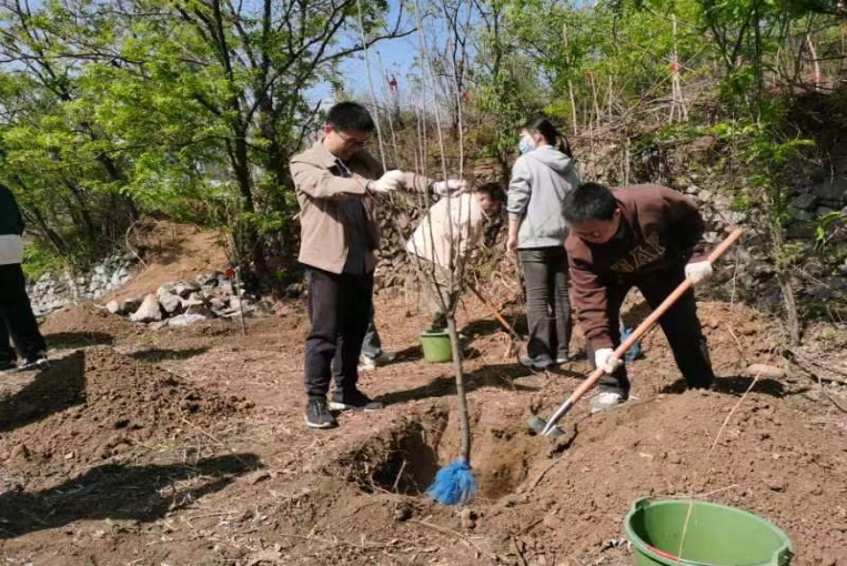 为深入开展学习贯彻习近平新时代中国特色社会主义思想主题教育,践行习近平生态文明思想,增强全体党员党性观念和党员意识,4月24日,十大正规买足球网站食品科学与工程硕士生党员在门头沟区谷山村开展了以“植树增春意,观耕汲力量”为主题的义务植树党日活动。
