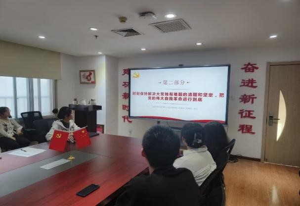 支部书记余美宏围绕本次活动的主题,从“坚定不移全面从严治党,深入推进新时代党的建设新的伟大工程”和“时刻保持解决大党独有难题的清醒和鉴定,把党的伟大革命进行到底”两个部分展开,讲述了党的十八大以来,习近平总书记总结党的百年奋斗历史和新时代全面从严治党实践经验,创造性提出“党的自我革命”重大命题,形成关于党的自我革命战略思想。