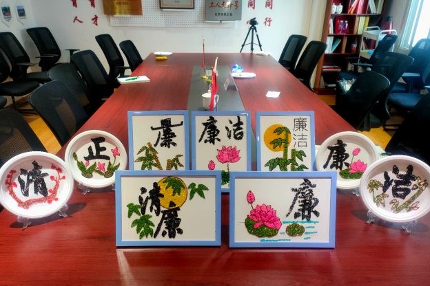 为加强党日活动与专业优势特色相结合,创建支部品牌特色活动,此次党日活动以创作主题“五谷画”的形式进行。李欣萍首先向大家介绍了“五谷画”的历史和由来,“一粒粒种子播撒在大地上,可以繁衍‘万物生机’;一粒粒种子粘贴在画纸上,可以绘就‘天下粮仓’”,这就是传统技艺非遗“五谷画”的魅力和价值所在。在了解了“五谷画”的历史背景和典故后,李健老师同党员和积极分子们以五谷杂粮种子为“画笔”,以图绘廉,通过漂亮的色彩搭配和巧妙的创意构思,创作出一幅幅设计新颖、形式多样、寓意廉洁的倡廉作品,以实际行动弘扬廉洁文化。