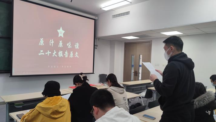 首先,支部所有同志轮流诵读二十大报告原文,原原本本、逐字逐句地学习二十大相关精神。