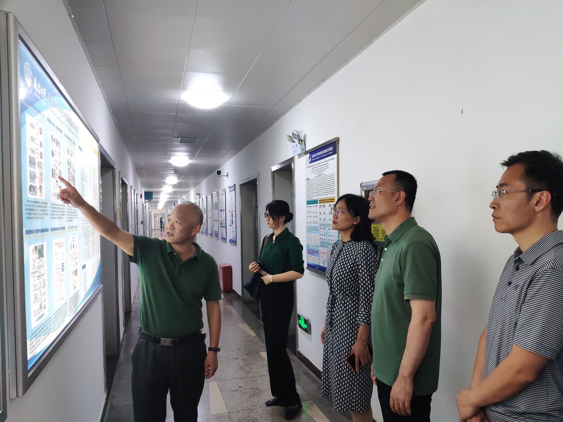 胡燕霞一行在南昌大学食品科学与技术国家重点实验室副主任熊涛的带领及介绍下参观了食品科学与技术国家重点实验室。