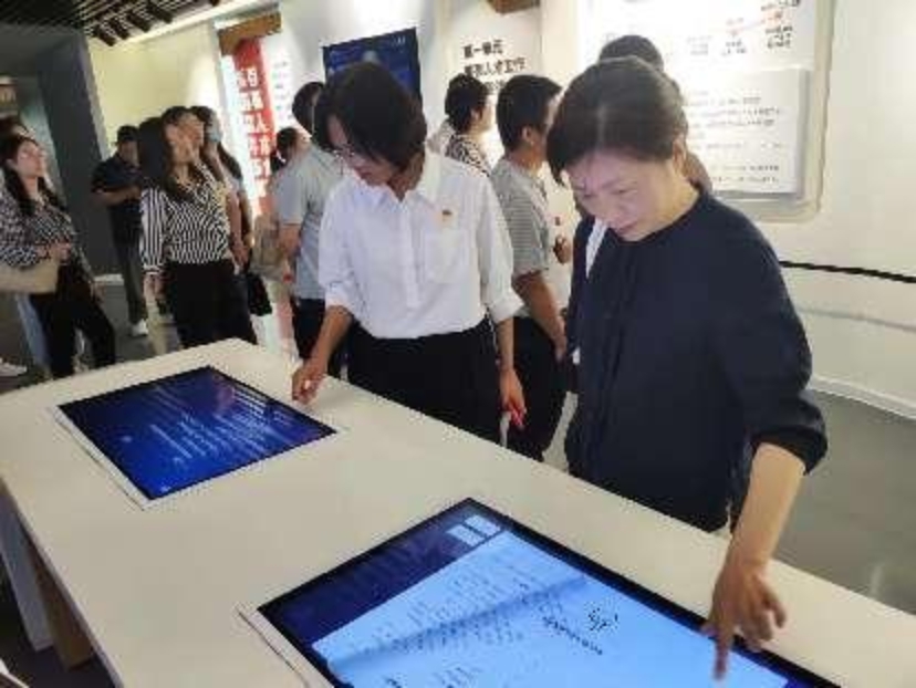 在讲解员的带领下,公司教师通过人才文化传统“贯古今”、人才引领发展“纳百川”、人才建功立业“新时代”、人才大有作为“看未来”等四大展厅,深刻感受了“聚天下英才而用之”人才主题展览;通过沉浸式的生动学习,体会了“3D幻影成像”“魔屏”“滑轨屏”“沉浸式多媒体屋”等现代科技手段,了解到国家及首都人才发展的情况脉络,回顾了党的百年非凡历程,展望了首都美好的未来图景。