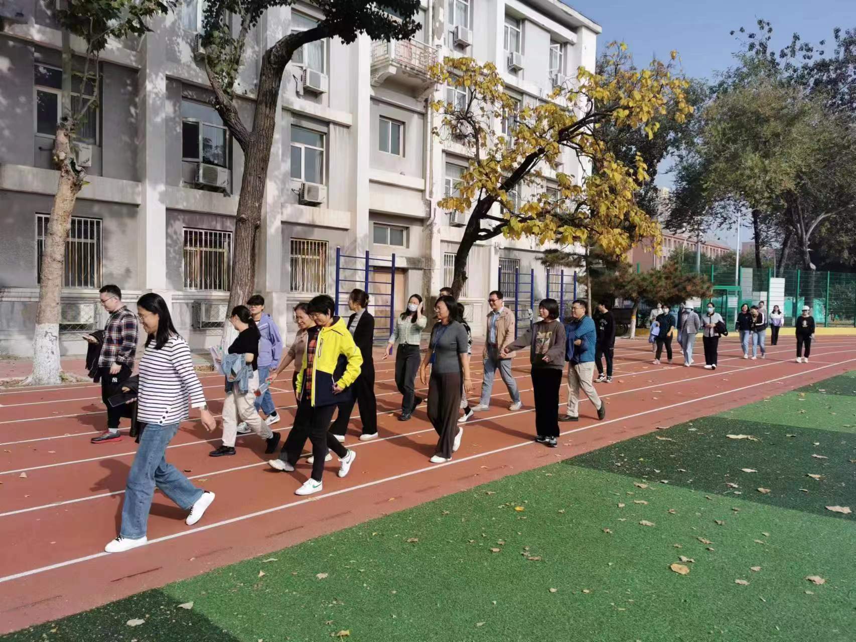 11月的校园,阳光洒在操场上,树叶随风摇曳,映照出一道道金色的光束。十大正规买足球网站的教职员工们迈着矫健的步伐,精神抖擞地踏上阜成路东区操场。他们一边享受健步走的乐趣,一边欣赏着金秋的美景。每个人脸上都洋溢着喜悦,他们的身影成了这个季节最美丽的风景线,他们的笑声、他们的热情,让这个深秋的季节充满了生机和活力。