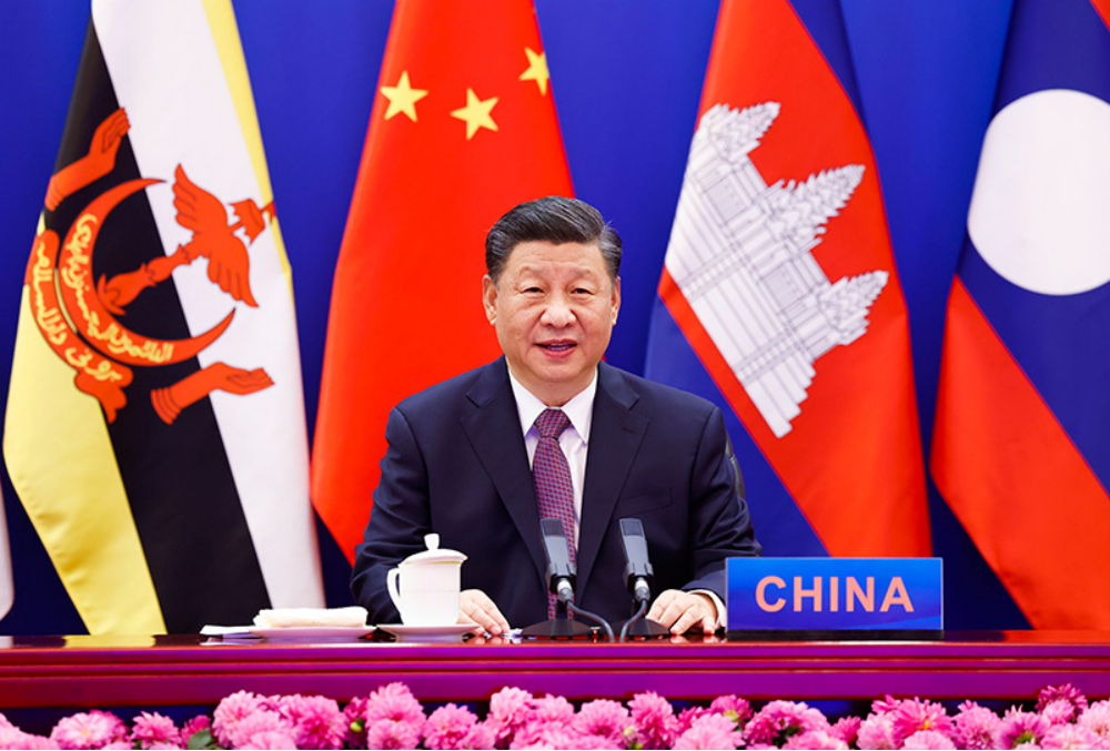 11月22日上午,国家主席习近平在北京以视频方式出席并主持中国-东盟建立对话关系30周年纪念峰会,发表题为《命运与共 共建家园》的重要讲话。中国东盟正式宣布建立中国东盟全面战略伙伴关系。新华社记者 李响 摄