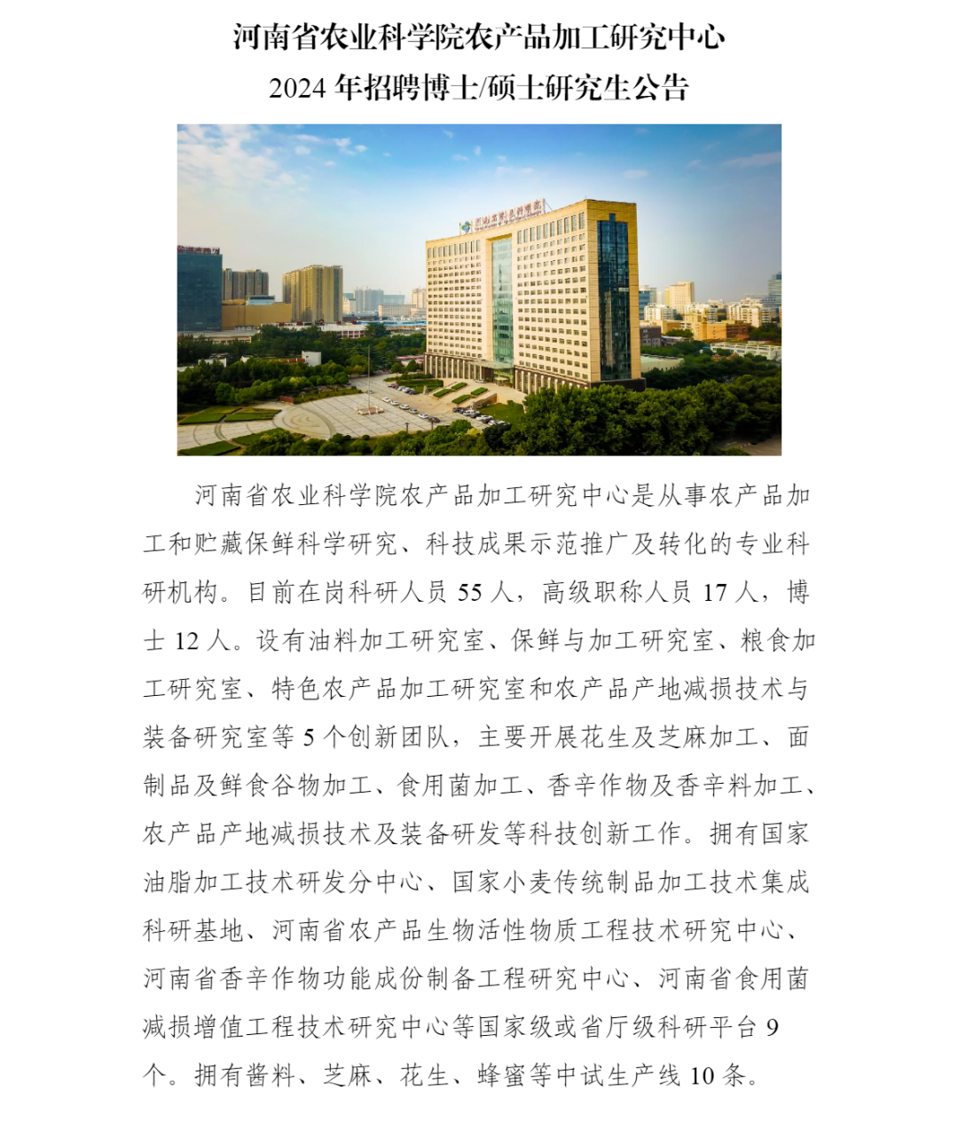 河南省农业科公司农产品加工研究中心招聘啦!