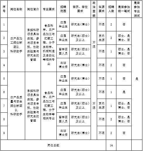 中国农业科公司农产品加工研究所 2020年度第一批公开招聘补充公告
