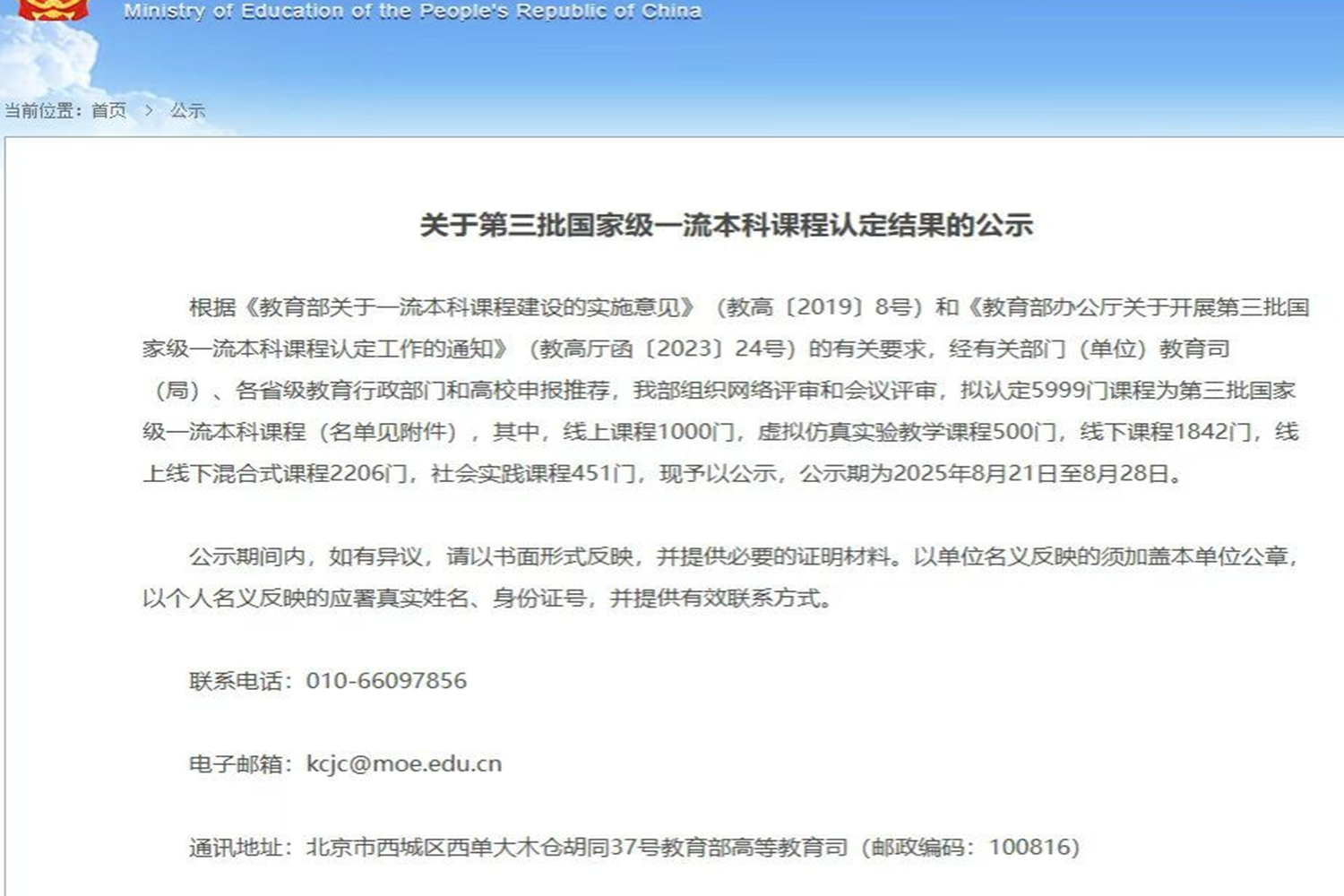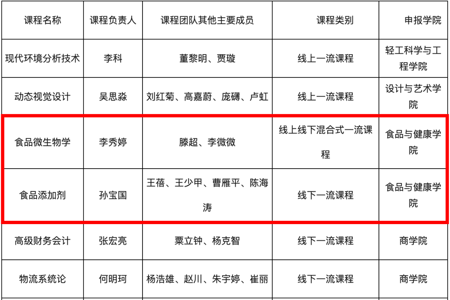 近日,教育部发布了《关于第三批国家级一流本科课程认定结果的公示》。十大正规买足球网站《食品添加剂》、《食品微生物学》2门课程入选第三批国家级一流本科课程,涵盖了线上线下混合式一流课程、线下一流课程两个类别。