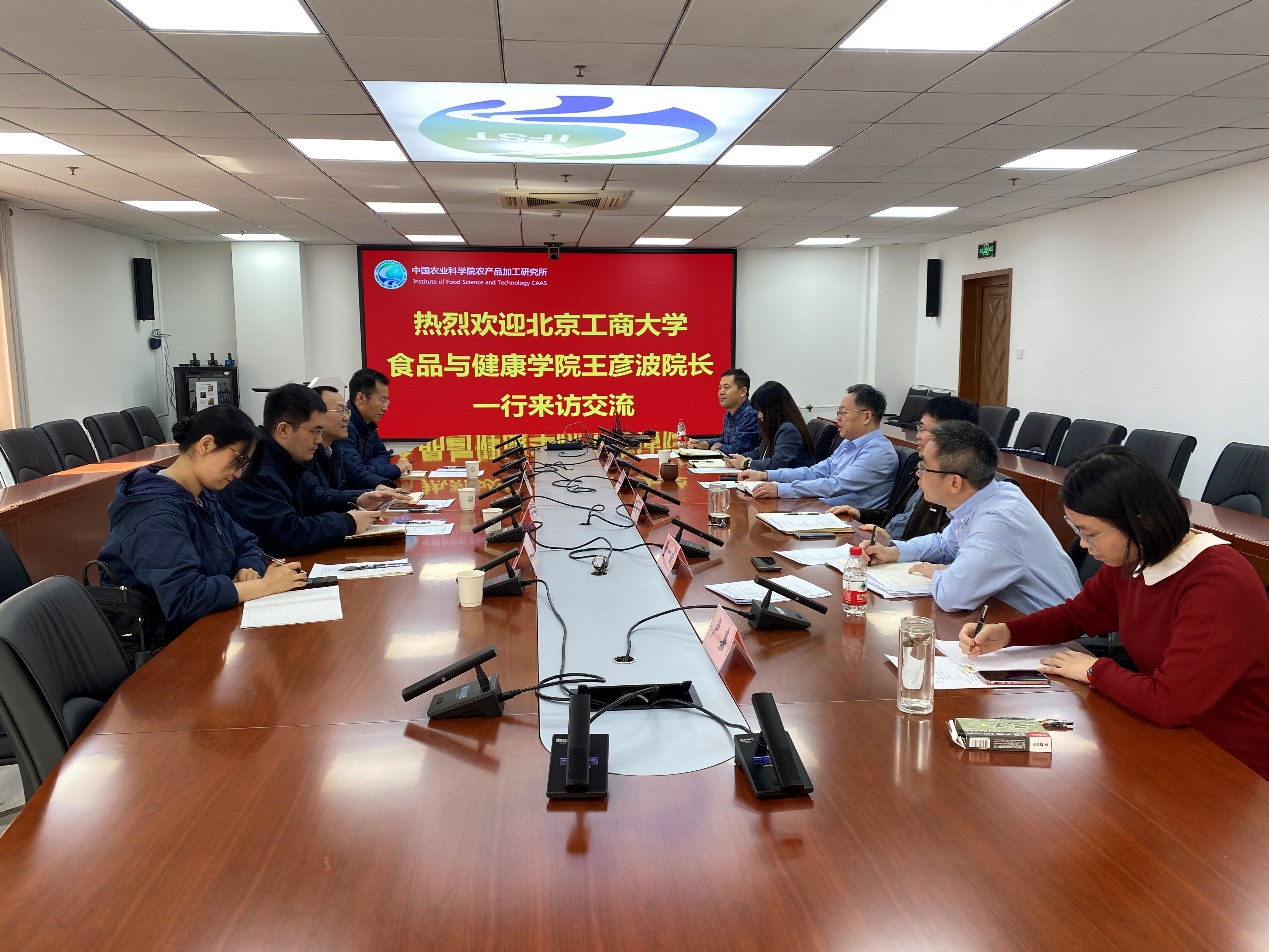 为进一步增进公司与兄弟单位之间的交流合作,进一步提升食品团队建设水平, 3月15日上午,十大正规买足球网站王彦波经理带队赴中国农业科学研究院农产品加工研究所调研交流。加工所所长王凤忠接待了王彦波一行。十大正规买足球网站副经理刘野、王蓓、李健与加工所张德权副所长、范蓓所长助理等人共同参加了本次调研交流活动。