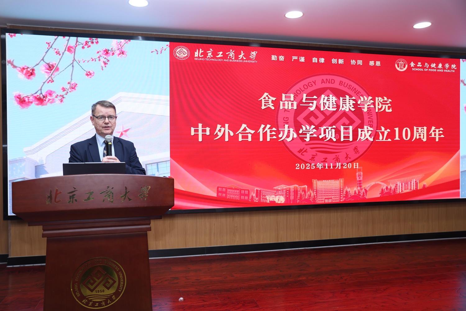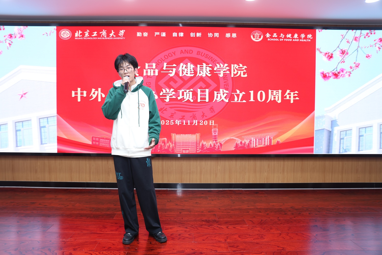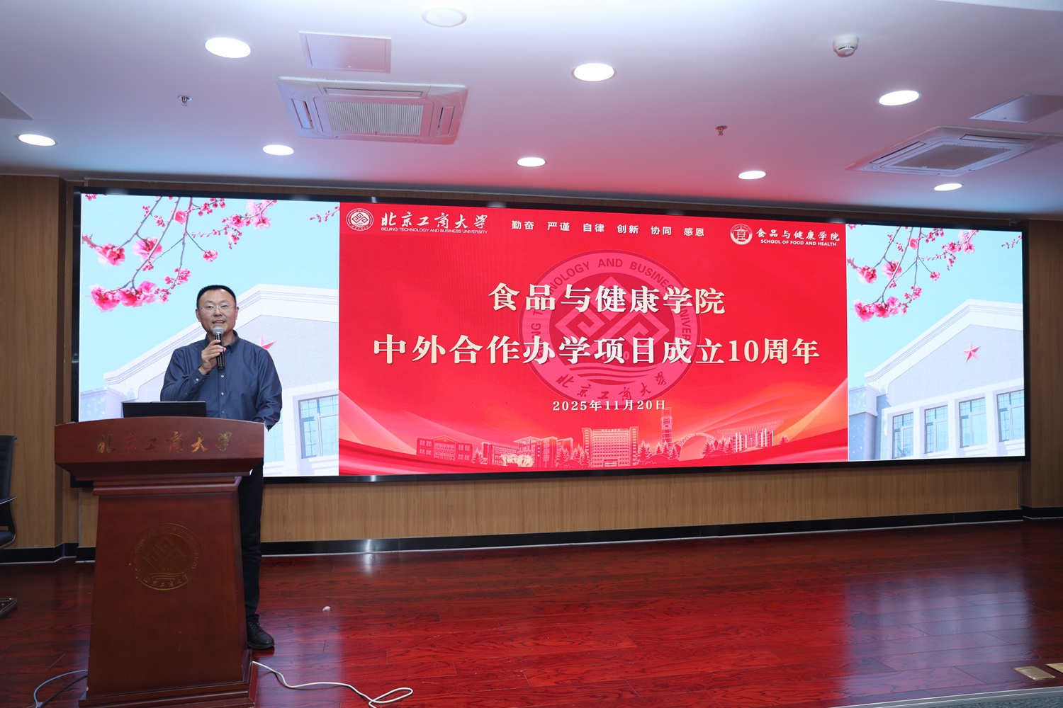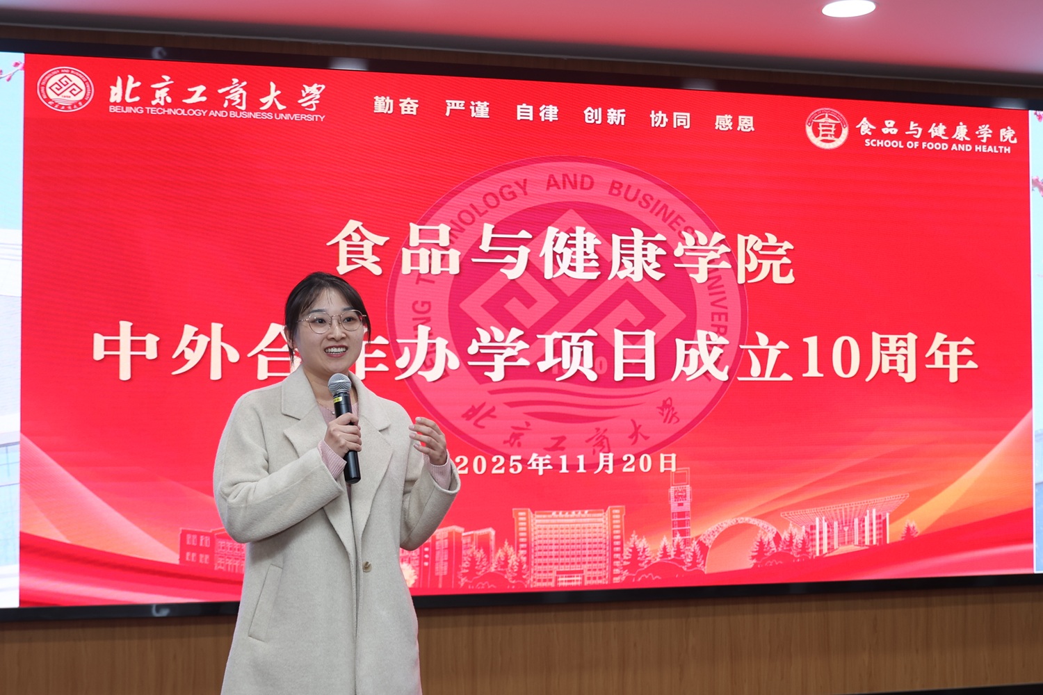 2025年11月20日,十大正规买足球网站和爱尔兰国立科克大学合作办学项目十周年庆祝活动在阜成路校区举行。科克大学食品科学国际学位项目主任Maurice O'Sullivan、副主任马晓彬,十大正规买足球网站国际交流与合作处副处长曹嬿、十大正规买足球网站经理王彦波、副经理王蓓,2015至2025级中外班师生和毕业生代表共同出席。活动由王蓓主持。
