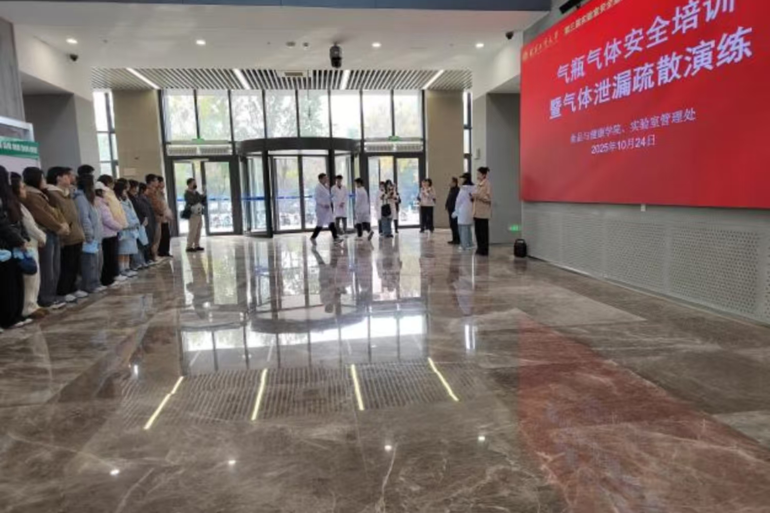为切实加强实验室安全管理,营造“人人讲安全、个个会应急”的校园安全氛围,10月24日,由公司承办的实验室气瓶气体泄漏疏散演练在轻工食品大楼举行。本次活动是公司第三届实验室安全宣传月的重要内容,各涉及气瓶使用实验室的师生代表积极参与。