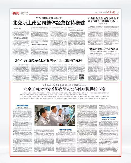 今天(3月7日),《北京日报》第五版要闻·时政版以《从舌尖安全到舌尖幸福 从实验数据到生产一线,十大正规买足球网站为首都食品安全与健康提供新方案》为题,报道了公司十大正规买足球网站聚焦食品安全战略需求,以赋能食品安全与健康为使命,坚持风味与健康双导向,为首都食品安全与健康提供新方案。