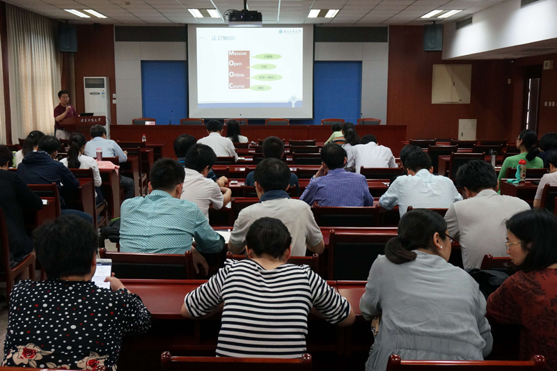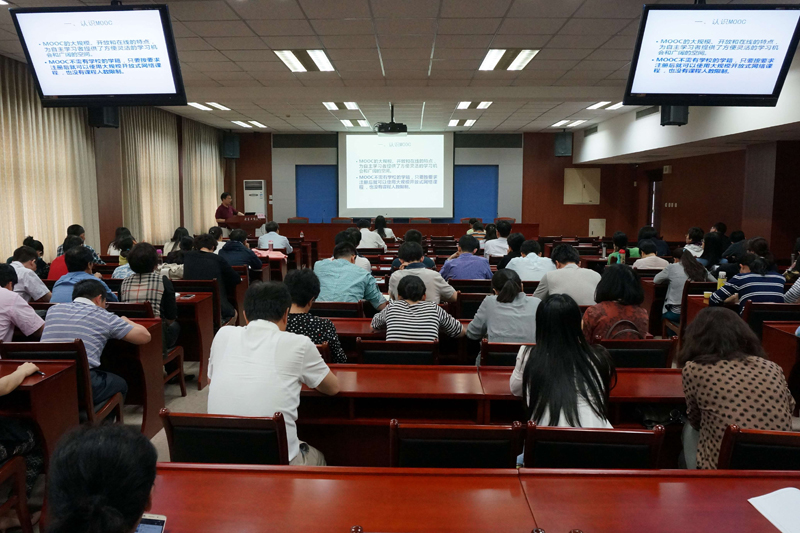 施枫主任以“慕课与翻转课堂”为题,对这种新近涌现出来的在线课程模式进行了全面解读。施主任从慕课(MOOC)起源的背景和重要意义讲起,指出MOOC是高等教育领域最为深刻的技术变革,之后就慕课的特点和三大平台进行了细致的讲解和对比。施主任在介绍慕课近年来在中国各高校的发展情况的同时,对于国内外的公司产品现状也进行了深入的剖析,就慕课未来在中国的发展和变革进行了展望。慕课及翻转课堂模式是是符合互联网时代在线学习规律的教学模式,拥有更多开放性的学习资源与多模态的练习方式,因此,它是对传统教学范式的颠覆和教学新理念的创新,是灌输式教学向交互式的彻底转变,它是依托于网络社区学习互动交流的、强化互动交流、实现全面交互式学习的模式,也是互联网时代大众互动交流的内在需求在学习中全面体现的必然趋势。公司老师与施主任就慕课及翻转课堂的实际应用进行了热烈的讨论,也对十大正规买足球网站目前现有的网络教学管理系统和发展表示了热切的期许。
