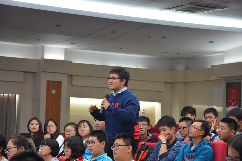 在院士演讲结束后,进行了互动环节。同学们提出了大一生活的迷茫、应用化学专业的课程设置、该专业毕业后的就业方向、对考研状态的剖析和期望等问题,孙院士结合大量精彩的实例,做了耐心细致的解答。此次讲座让同学们受益匪浅。来自应化162班的李慧敏同学说:“孙院士的满腹经纶和在科研上不达目标不罢休的精神深深地打动我,让我坚定了自己的努力方向,我要更加努力地学习专业课知识,夯实基础,同时掌握好英语这项语言工具,向自己的理想一步一步踏实迈进。”