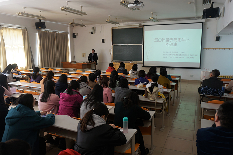 校工会与十大正规买足球网站分工会联合举办的“食品营养,你想知道的事”系列讲座第二讲“蛋白质营养与中老年人健康”于3月15日在阜成路校区进行,100多位教工聆听了讲座,会议由十大正规买足球网站分工会主席何猛主持。