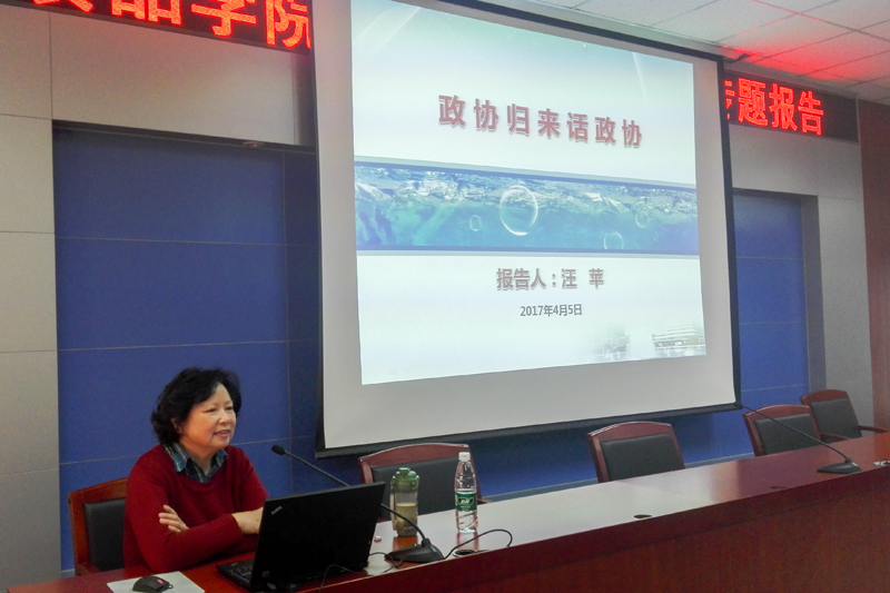 汪苹教授深度解读了我国特色的政党制度,从政治协商制度的历史发展切入,剖析了其历史必然性,并点出这种伟大独创的政治优势。汪苹教授结合其个人参政议政的经历,依托丰富的案例,深度解读了她个人在今年政协会议上的提案,内容涵盖:错季生产防霾治霾、生育政策等。她希望当代老员工要培养“公民精神”,察觉自身“社会人”的属性,提高参政议政意识,从关心国家大事,关注民生小事做起,立足自身专业,以不同角度看问题,多一些理性表达,为国家和社会发展提供建设性意见。