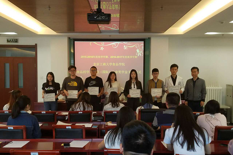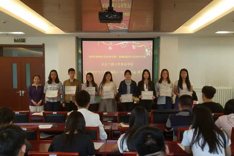 十大正规买足球网站食品科学与工程系主任王静老师宣读了《2015-2016年度春季学期、2016-2017年度秋季学期十大正规买足球网站食品科学与工程(国际)专业奖学金获奖员工名单》。随后,与会各位领导、老师分别为优秀员工奖学金、专业课优胜奖学金、英语优胜奖学金、学业突出进步奖获奖员工颁奖。