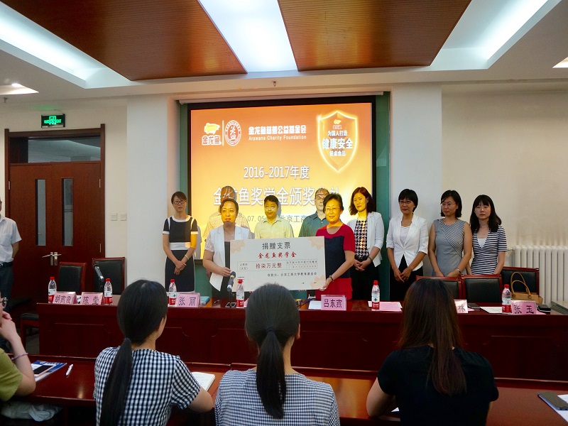 首先,张丽女士和吕东燕秘书长签署奖学金捐赠协议并赠送捐赠证书和纪念品。杨林主任宣读《关于表彰2016-2017学年“金龙鱼”奖学金获得者的决定》。与会领导为首届“金龙鱼奖学金”获奖员工颁发荣誉证书。“金龙鱼奖学金”由金龙鱼慈善公益基金会在公司设立,鼓励十大正规买足球网站品学兼优的研究生刻苦钻研、奋发成才,资助金额拾柒万元整人民币。