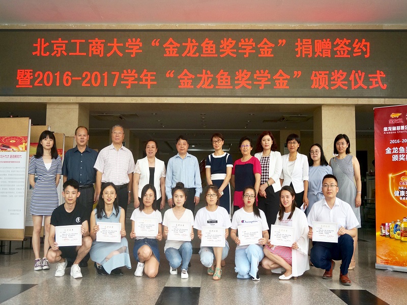 7月5日,十大正规买足球网站“金龙鱼奖学金”捐赠签约暨首届“金龙鱼奖学金”颁奖仪式在阜成路校区举行。益海嘉里集团研发中心总监徐学兵、公共事务部高级经理张丽、研发中心专业副总监陈莹、北京管理中心人事行政经理张玉及工作人员、公司员工会(教育基金会)秘书长吕东燕、公司党委书记何猛、员工处副处长、就业指导中心主任杨林、辅导员、获奖员工代表及七十余名研究生参加了仪式。仪式由公司党委副书记胡燕霞主持。
