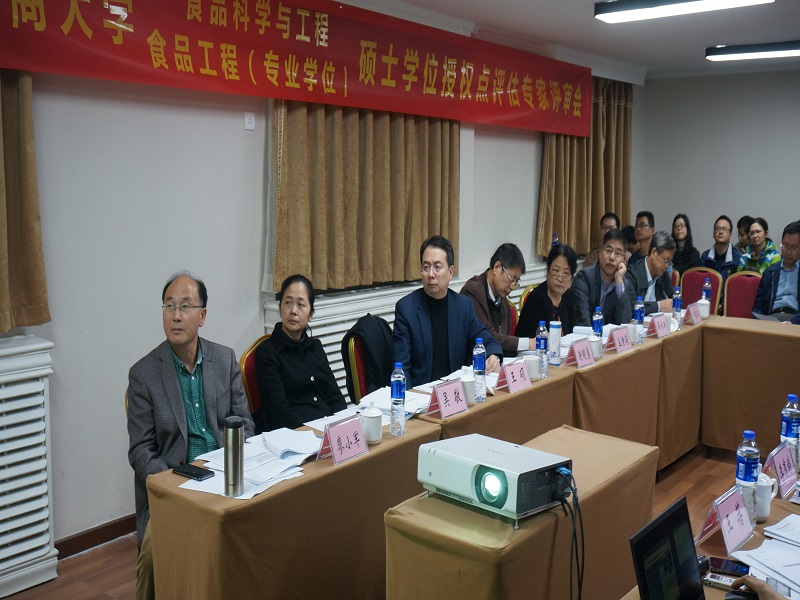 食品科学与工程一级学科学位授权点、食品工程领域专业硕士学位授权点评估专家评审会邀请国务院学科评议组成员、南昌大学谢明勇教授担任专家评审组组长,国务院学科评议组成员、中国海洋大学薛长湖教授,南开大学王硕教授、江南大学吴敬教授、中国农业大学廖小军教授、中国食品科学技术学会孟素荷理事长、中国轻工业联合会长于学军副秘书长担任专家评审组成员。