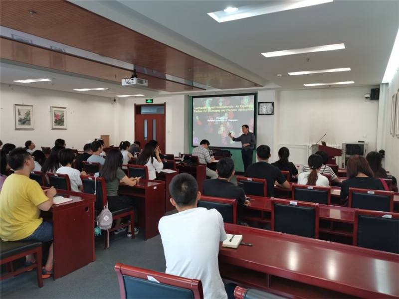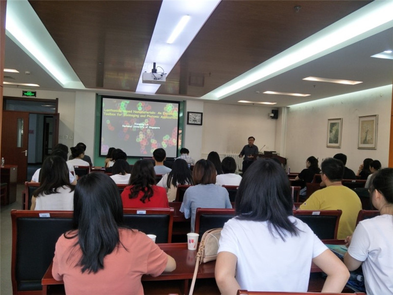 8月16日上午,新加坡国立大学科公司刘小钢教授受邀在综合楼二楼西会议室进行了题为“Lanthanide-based Nanomaterials: An Expanding Toolbox for Bioimaging and Photonic Applications”的主题报告,介绍了多种镧系掺杂纳米颗粒的制备及其在多维成像和生物检测中的应用。