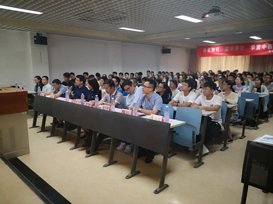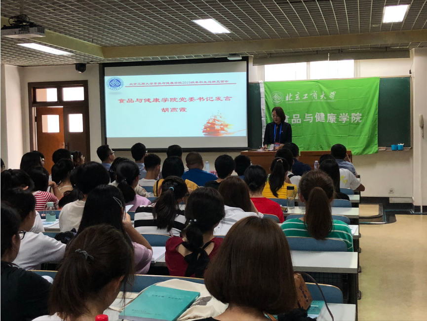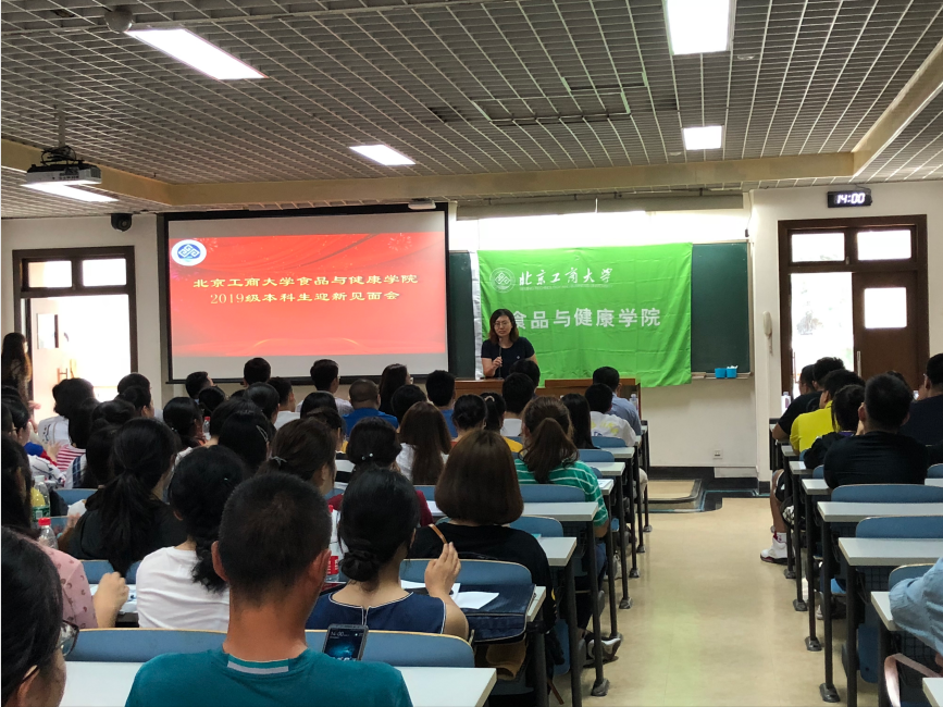 下午两点,公司在文二101室召开2019级本科生迎新见面会。公司党委书记胡燕霞、副经理刘野、经理助理王少甲、食品科学与工程系主任肖俊松、食品质量与安全系主任熊科、新生班主任郁永辉、马铁铮、何亚荟,本科教学秘书邹欣、辅导员李欣萍及2019级全体新生和部分家长参加了见面会。会议由公司党委副书记单静敏主持。
