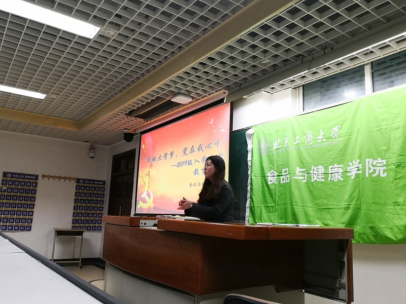 李老师首先端正同学们的入党动机,告诉同学们要有全心全意为人民服务的思想,要有起先锋模范带头作用的觉悟。她就当代老员工为什么要加入中国共产党的问题以及详细的入党流程做了介绍。她希望同学们在大学四年里在提高学习成绩的同时,也要注重全面发展,努力向上,积极向党组织靠拢。