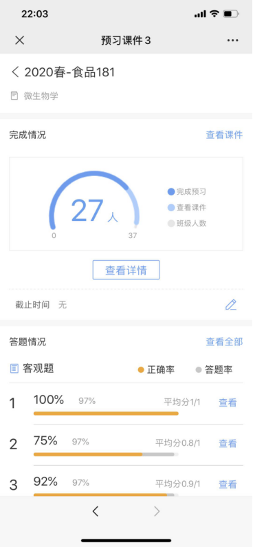 二、本学期《微生物学》在线课堂相关数据