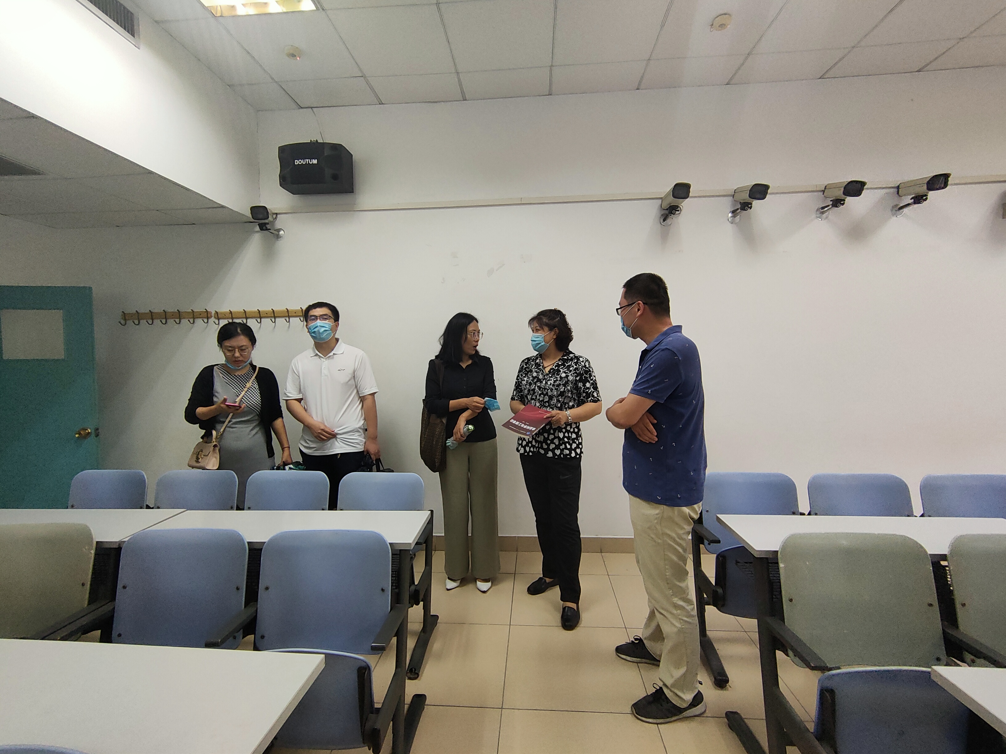 秋高气爽,阳光明媚。9月14日是新学期同学们到校上课的第一天,公司领导对开学第一天上课情况高度重视,公司党委书记胡燕霞、副经理李健、党委副书记单静敏、教务老师仵雁北以及辅导员早上7:45在阜成路校区教三楼下集合,走进教室,检查同学们上课情况。