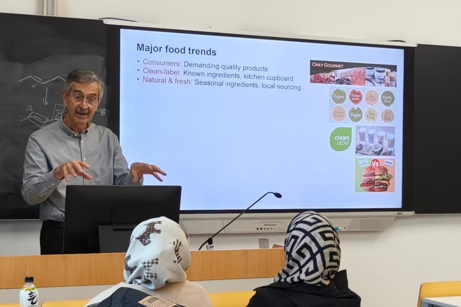 Imre教授深入浅出地阐述了植物基食品风味开发的挑战与解决方案,核心是通过“感官组学(Sensomics)”方法缩小植物基食品与传统动物源食品的“风味差距”,同时结合市场趋势、研究案例和未来方向,系统阐述植物基食品(鸡蛋替代品、肉类替代品)的风味优化路径。此外,Imre教授探讨了未来方向从“添加风味”到“原位生成风味”的策略,包括使用复杂天然成分、模拟肉类纤维结构、用结构化植物脂质替代动物脂肪,提升口感与风味载体功能等。此次讲座不仅使同学们对植物基食品风味开发有了更深刻的认识,而且拓展了同学们的学术视野,加深了同学们对食品与健康研究领域的了解。