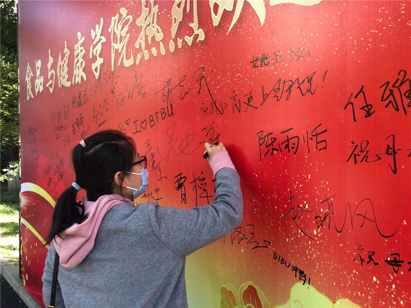 同时在阜成路校区,上午9时,返校员工们重聚校园,在志愿者的引导下来到东区8号楼前公司签到处签到、领取纪念品,并在签名墙上签名、写下对母校的深深情感与祝福。他们中有的是怀揣梦想和激情的刚刚离开校园的新生代,也有毕业数十年已书写出绚丽人生篇章的工商人。重温往昔,岁月虽爬上了曾稚嫩的脸庞,微风轻拂,飘散开的却是浓浓的情谊。