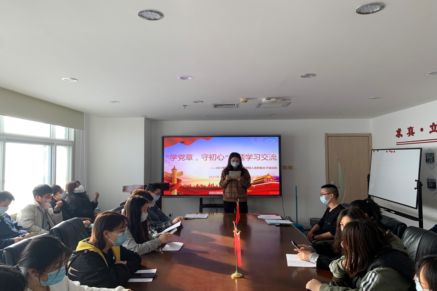 2021年秋季入党积极分子培训班于11月13日在科教楼805组织学员开展了以“学党章,守初心”为主题的学习交流会,旨在通过对《中国共产党章程》的学习,增强学员们对党的性质、宗旨、理论和路线方针的理解,引导学员们坚守入党初心,牢记使命担当。学习交流会以班级为单位,由各班主任主持开展。