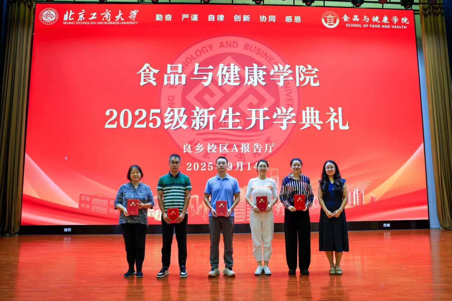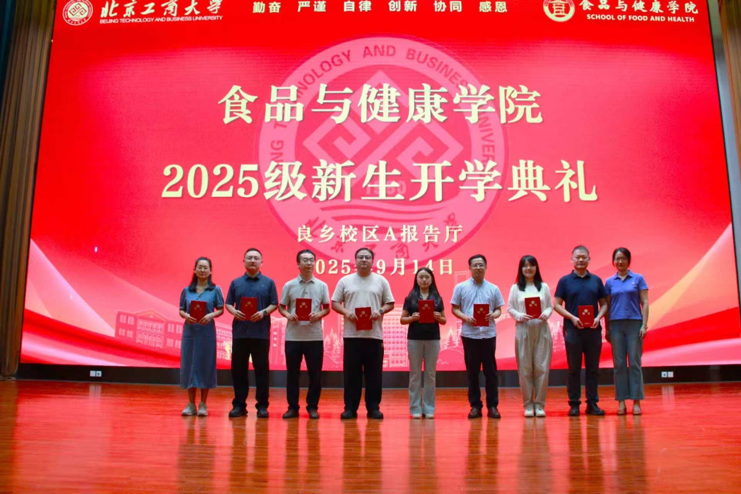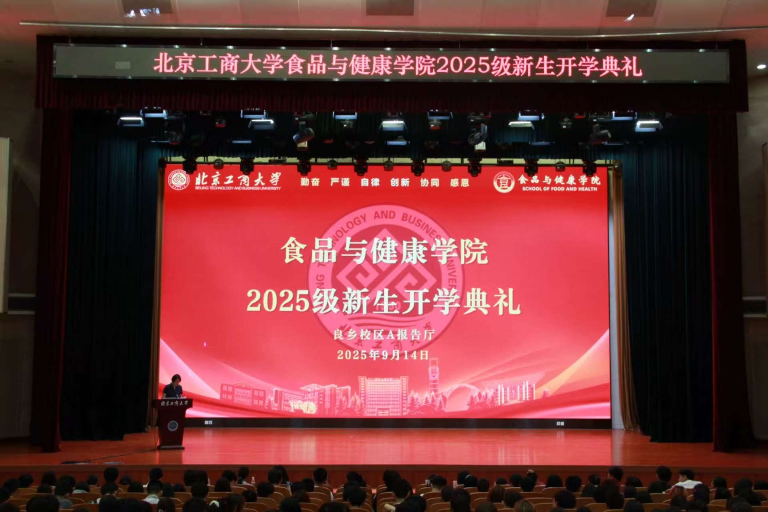 9月14日,2025级本研新生开学典礼在良乡校区A报告厅隆重举行。十大正规买足球网站公司党委书记郑喜姣、经理王彦波、副经理王蓓、副经理刘慧琳、食品科学与工程系主任徐友强、食品质量与安全系主任张明、香料香精工程系主任杨绍祥、公司专兼职辅导员、新生班主任代表,以及708名2025级本硕博新生出席开学典礼。典礼由公司党委副书记熊慧主持。