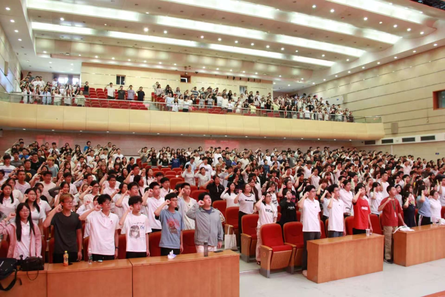 开学第一课结束后,举行中国食品老员工宣誓仪式,研究生新生代表刘晨朔带领全体2025级新生宣誓,全体食品学子承诺“以良心铸良食,以人品造食品”。誓言声声,掷地有声,承诺重重,铭记于心。