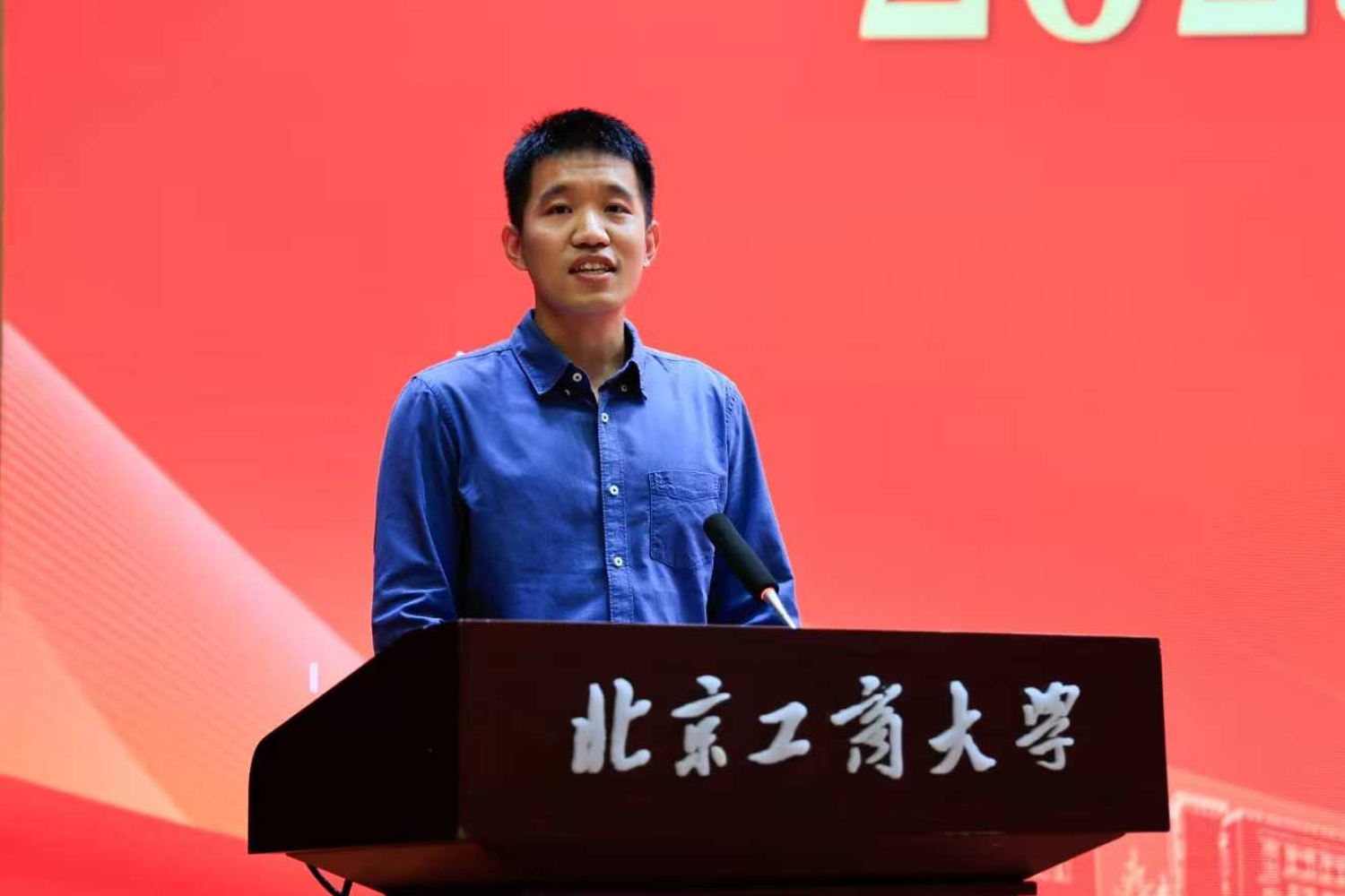 本科生班主任代表滕超教授发言,他表示将积极主动与员工沟通交流,尽己所能,将员工培养成才,做到教学相长,教书育人,并对新生们提出两点建议:一是养成良好学习习惯,尽快适应大学的学习生活节奏;二是构建团结和谐的班级氛围,学会沟通和表达,培养集体意识和荣誉感。