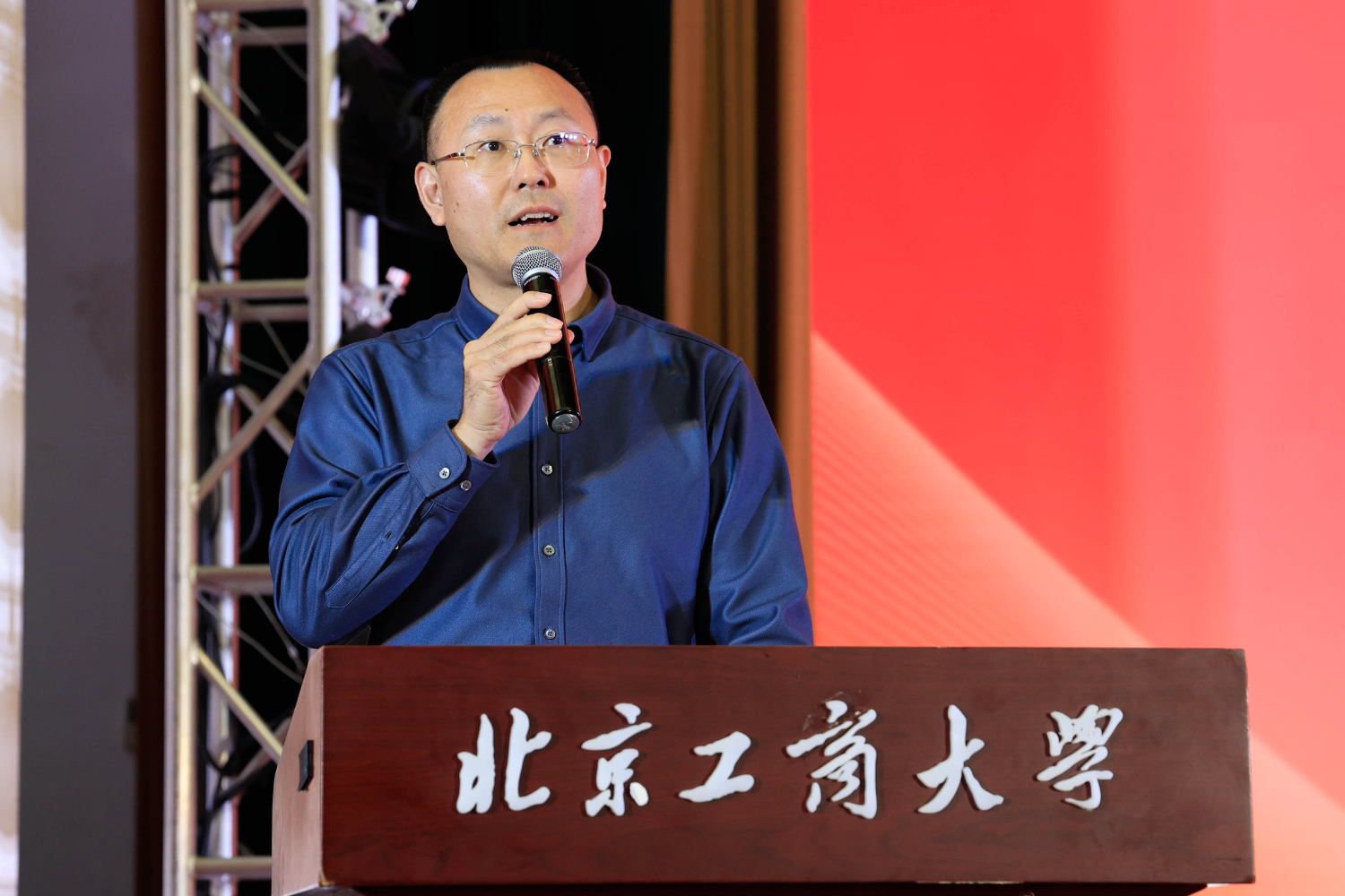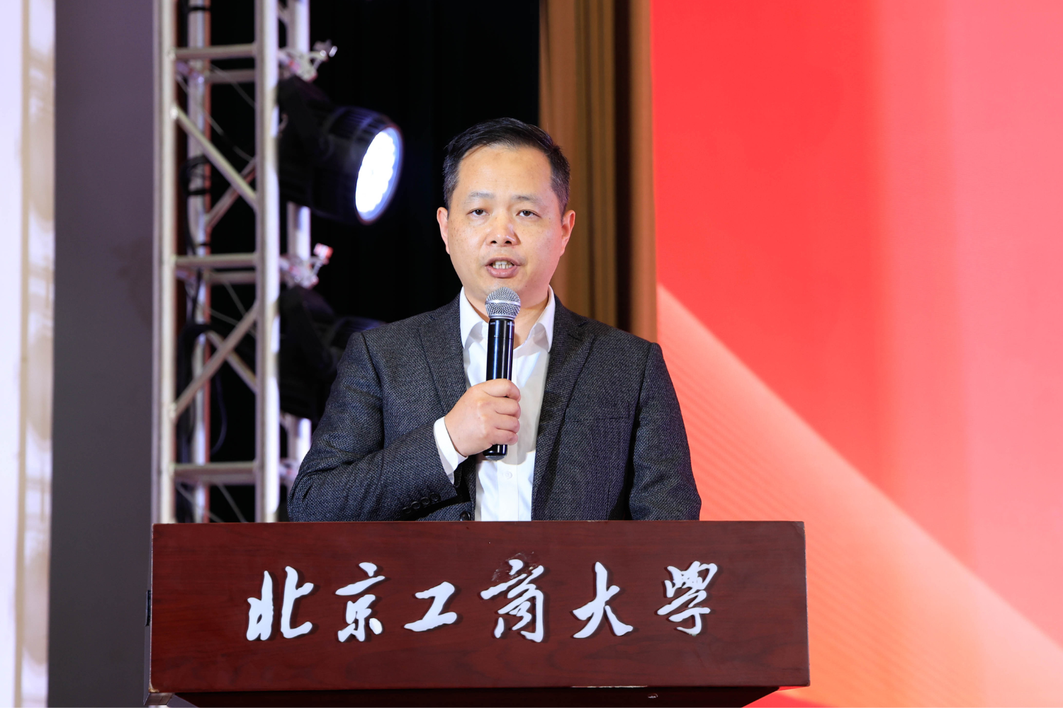 北京味食源食品科技有限责任公司董事长助理兼研发总监、北京市劳动模范严江在发言中首先向获奖员工表示热烈祝贺,并对公司的培养致以敬意。他回顾了自2011年设立“味食源奖学金”以来与公司在人才培养方面的合作历程,强调食品行业的生命力在于创新,而创新的根基在于人才。他分享了两点心得:保持对“味道”的敬畏,让创新兼具科技与温度;坚守对“创新”的执着,勇于在解决实际问题中实现价值。严江表示,公司将持续深化与公司的产学研合作,提供更多实践平台,共同推动食品行业高质量发展,并祝愿学子们学业有成,公司再创佳绩。