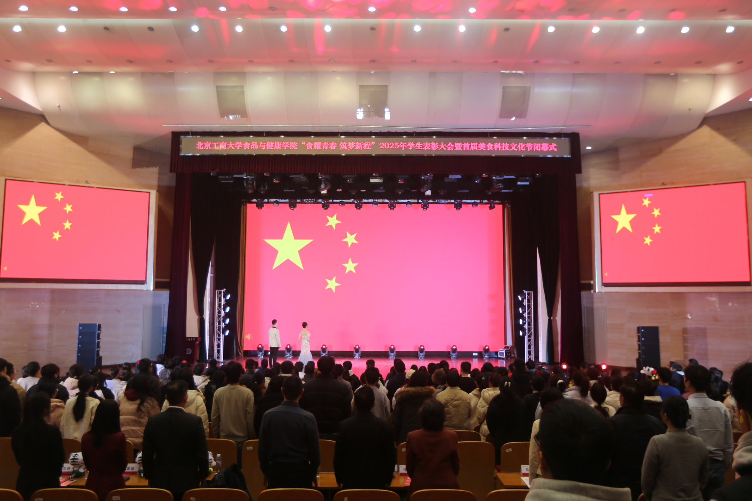 在庄严的国歌声中,大会正式开始。精心编辑的视频回顾了公司“食韵风华·品悟匠心”首届美食科技文化节的精彩片段,展示了员工们的创新实践与突出成果。在一个多月的时间内,从开幕式到三大嘉年华、三大竞赛、三大关键环节,每个项目都圆满结束,每位努力拼搏过的同学都收获了成长和进步。