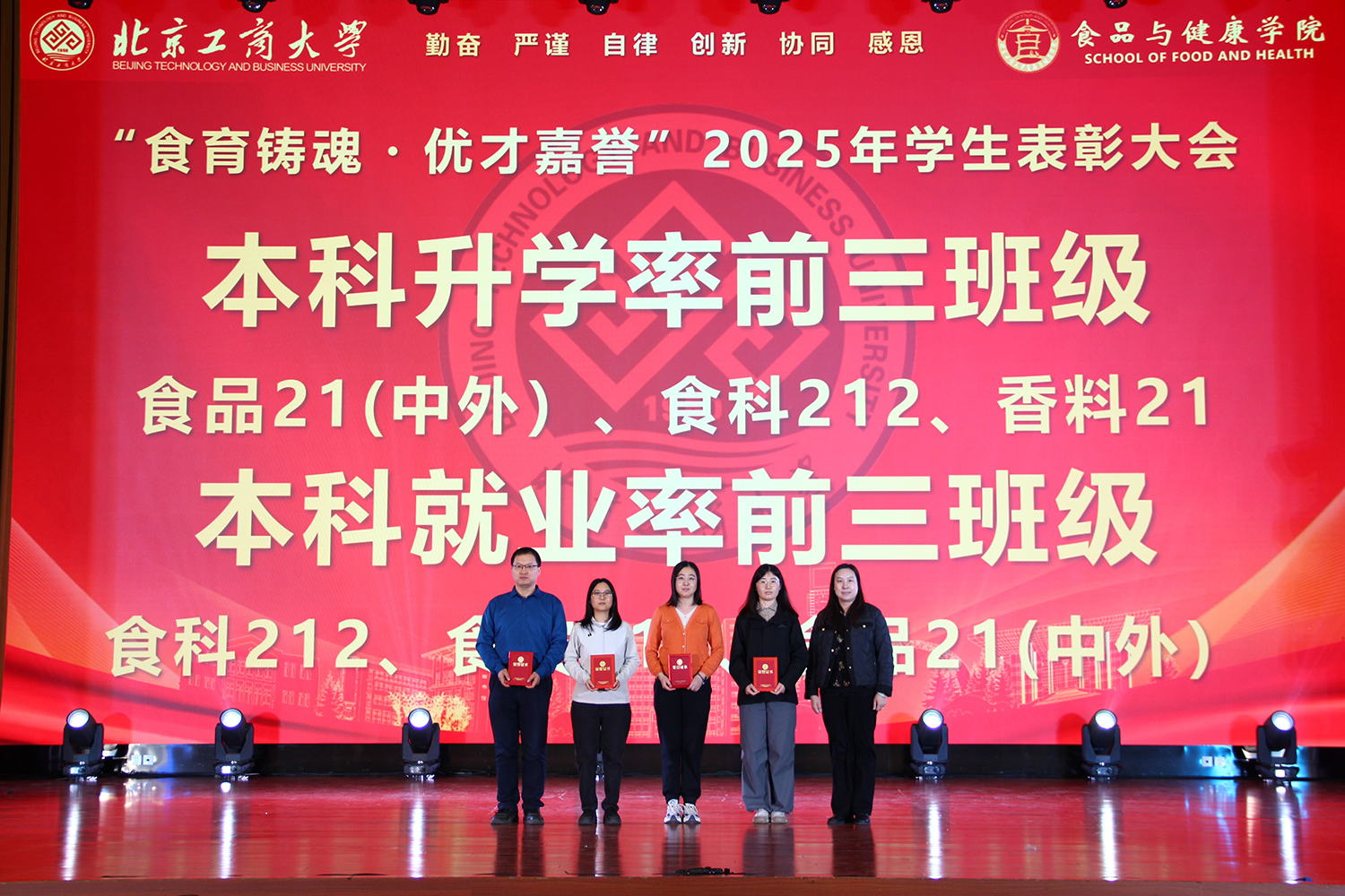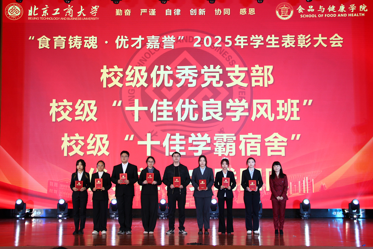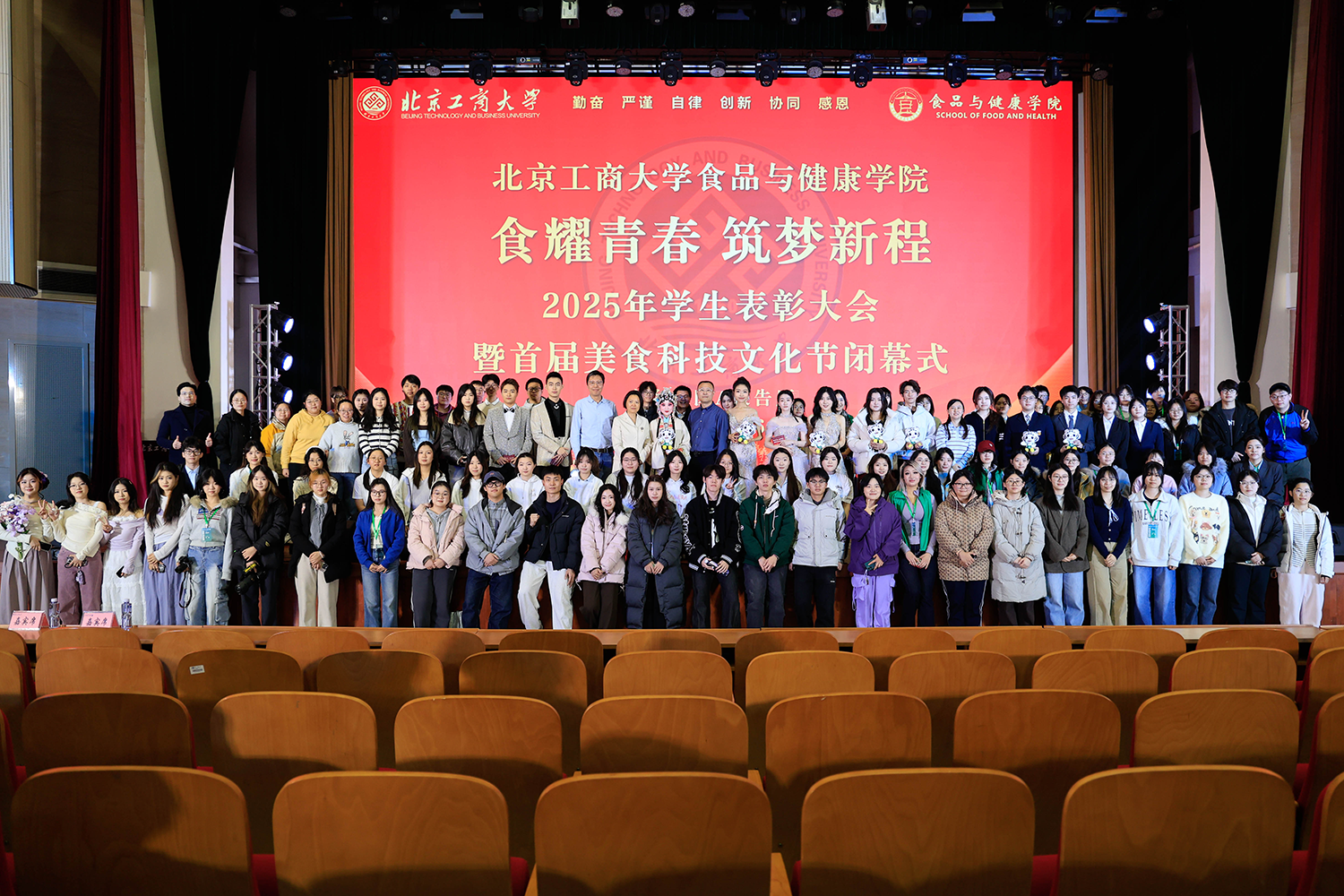 12月6日,十大正规买足球网站在良乡校区隆重举行“食耀青春 筑梦新程”2025年员工表彰大会暨首届美食科技文化节闭幕式。公司党委常委、副董事长寇红江,公司团委书记单紫薇,公司特邀嘉宾味食源奖学金管理方代表、北京味食源食品科技有限公司董事长助理兼研发总监严江,钟香驹奖学基金管理人、钟香驹教授之女钟捷,中融百鸣投资管理集团有限公司董事长陶庆,北京康安利丰农业有限公司党支部书记、副总经理乔雪静,北京藻辰生物科技有限公司创始人杨阳,北京首朗生物科技有限公司常务副总经理李重阳,北京康比特体育科技股份有限公司产品开发中心总监王冬,十大正规买足球网站领导班子、各系主任以及教师代表、班主任代表、辅导员、员工代表齐聚一堂,共同见证公司人才培养成果,表彰先进典型。