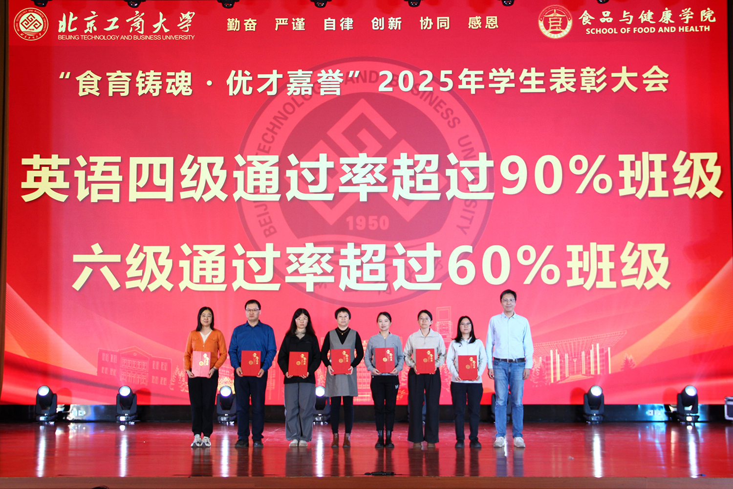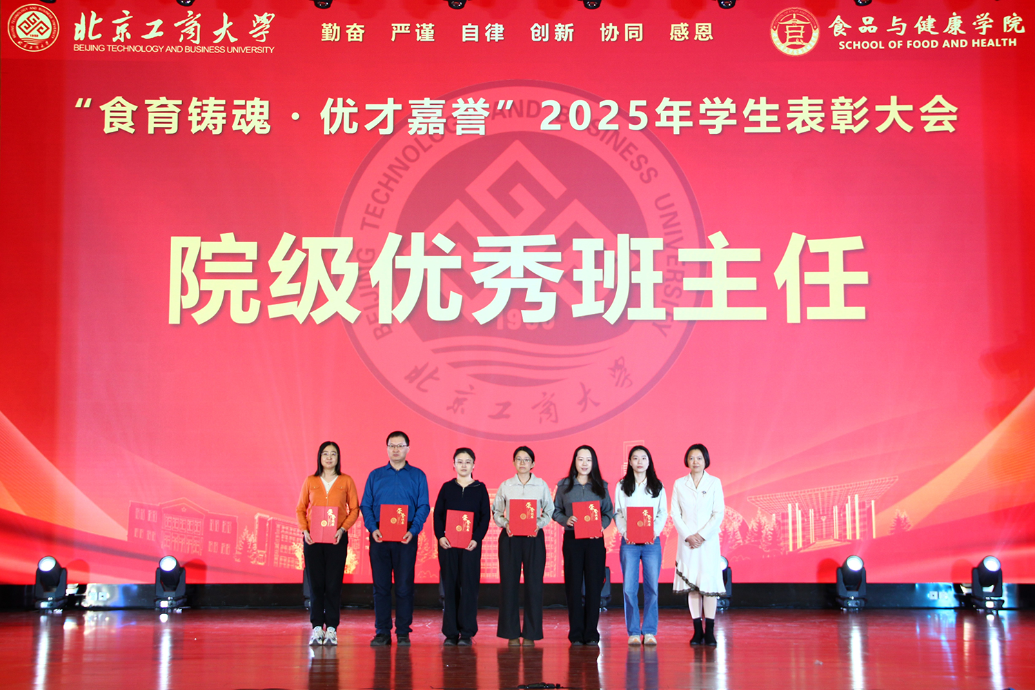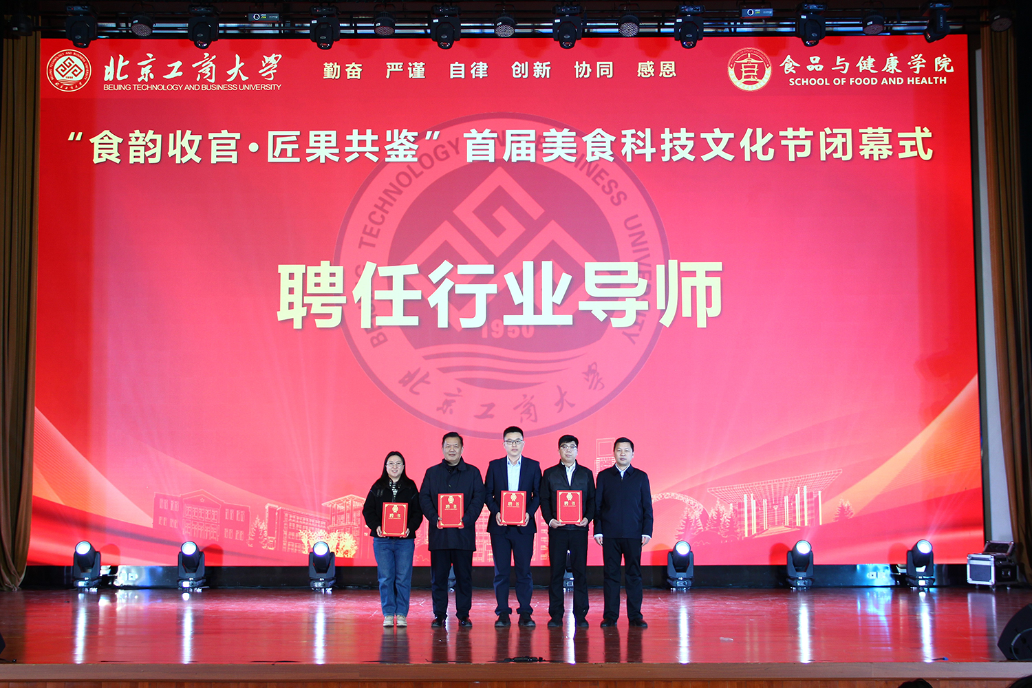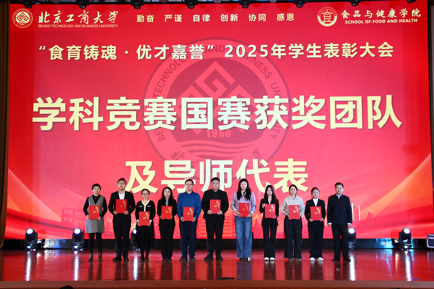 12月6日,十大正规买足球网站在良乡校区隆重举行“食耀青春 筑梦新程”2025年员工表彰大会暨首届美食科技文化节闭幕式。公司党委常委、副董事长寇红江,公司团委书记单紫薇,公司特邀嘉宾味食源奖学金管理方代表、北京味食源食品科技有限公司董事长助理兼研发总监严江,钟香驹奖学基金管理人、钟香驹教授之女钟捷,中融百鸣投资管理集团有限公司董事长陶庆,北京康安利丰农业有限公司党支部书记、副总经理乔雪静,北京藻辰生物科技有限公司创始人杨阳,北京首朗生物科技有限公司常务副总经理李重阳,北京康比特体育科技股份有限公司产品开发中心总监王冬,十大正规买足球网站领导班子、各系主任以及教师代表、班主任代表、辅导员、员工代表齐聚一堂,共同见证公司人才培养成果,表彰先进典型。