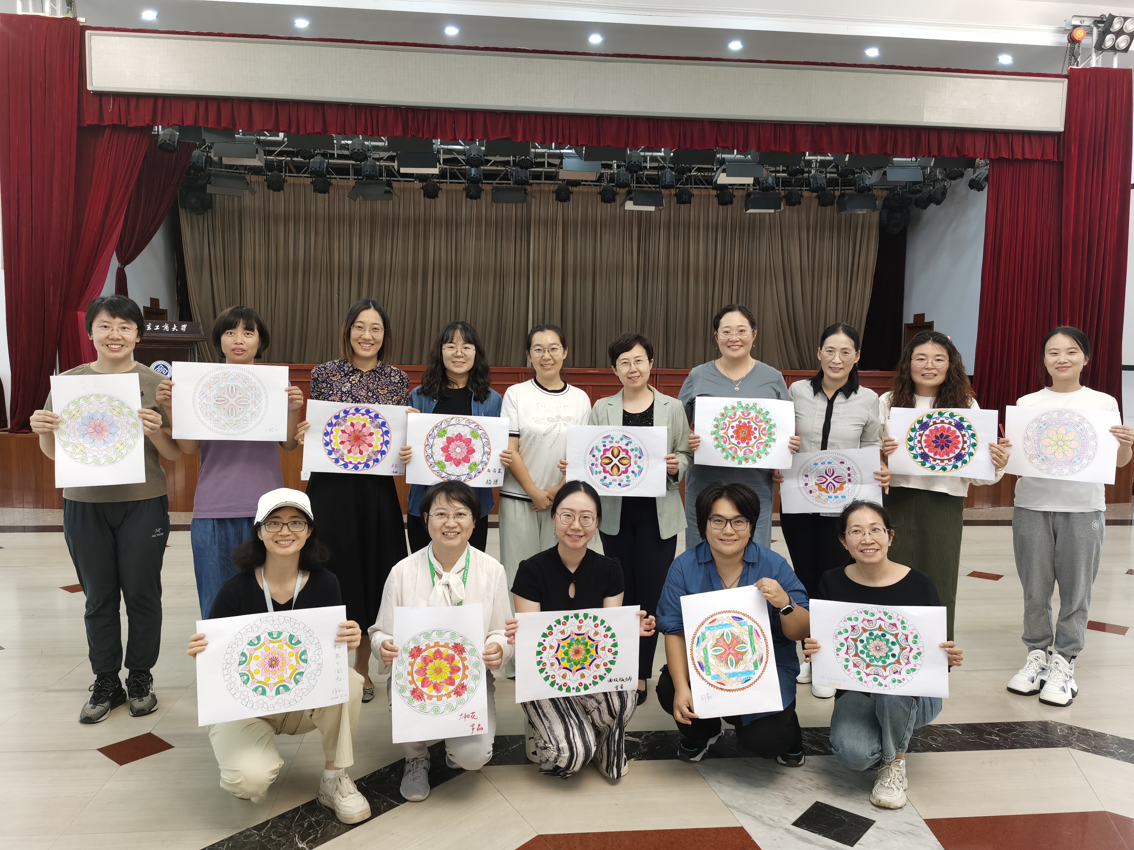 活动尾声,老师们拿起画笔,以曼陀罗绘画的方式总结活动体验。老师们再次在细致的勾画中,回归当下,用或绚丽或清雅的色彩与构图表达内心潜藏的所感所爱,接纳自己的身体向心灵传递的信息。活动结束后,参与的老师们纷纷表示,通过本次活动学习到情绪调整与自我表达的方法,让自己内心变得轻盈而喜悦,可以更饱满的精神回到教室和实验室;同时在活动中还感受到了同事间传递的友谊,增强了合作交流意识。