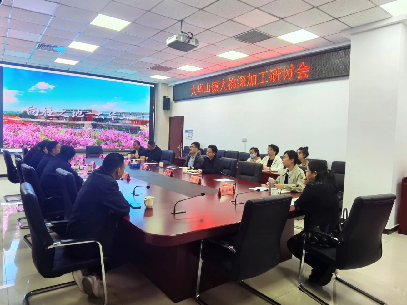 与会人员共同观看了大华山镇宣传片,了解大华山镇的区位优势、资源禀赋、产业基础、大桃加工发展方向等信息。相关方面负责人提出了大桃产业升级更新等技术需求和难点问题。