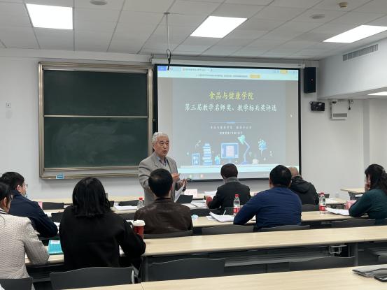 第二阶段进行的是教学标兵的选拔,王金鹏老师讲解的是清洗机械与设备中的清洗与物料预处理设备,着重介绍了CIP系统的构成以及在实际生产应用中的选择;路士熠老师针对目前食品酶制剂中的“卡脖子”难题,以习近平总书记在二十大报告中多次提到的“科技创新”鼓励大家加快解决核心技术“卡脖子”难题,着重讲解了酶抑制剂类型;王丽金老师以不同肉类制成的佳肴形象地引出不同肉类产品风味的概念,详细讲解了肉及肉制品风味前体物质。