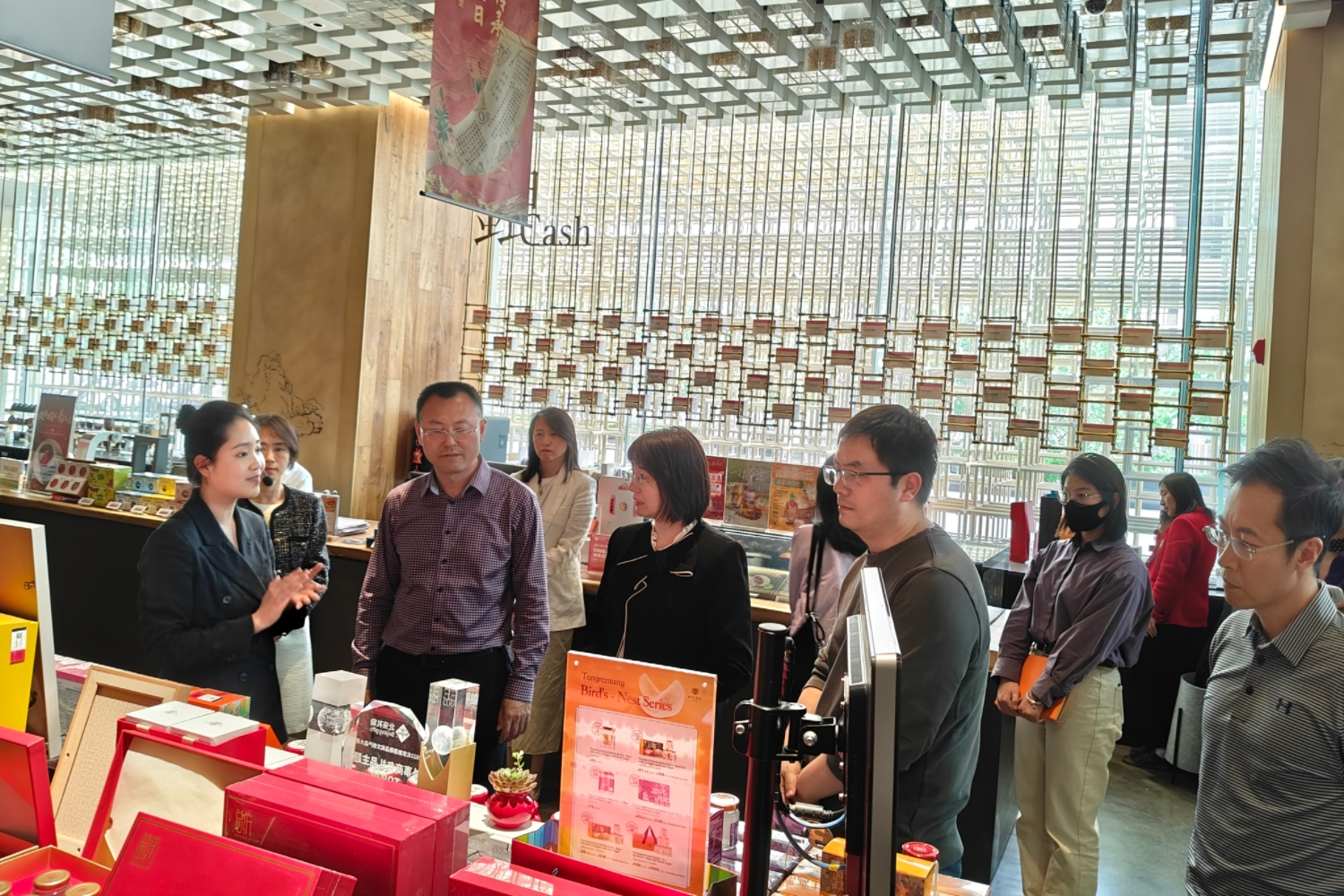 访企团首先参观了同仁堂健康大兴基地的同仁堂知嘛健康零号店,对企业文化、发展历程、未来规划等有了更深入的了解,也进一步明晰了校企双方在诸多领域存在着深厚且广阔的合作潜力与空间。参观过程中,王彦波经理介绍了十大正规买足球网站在食品风味、安全、营养以及风味与健康交叉创新等领域的人才培养、科学研究、社会服务基本情况,阐述了产学研深度融合的重要性和必要性,表达了双方在人才培养与就业等方面持续深化合作的希望。