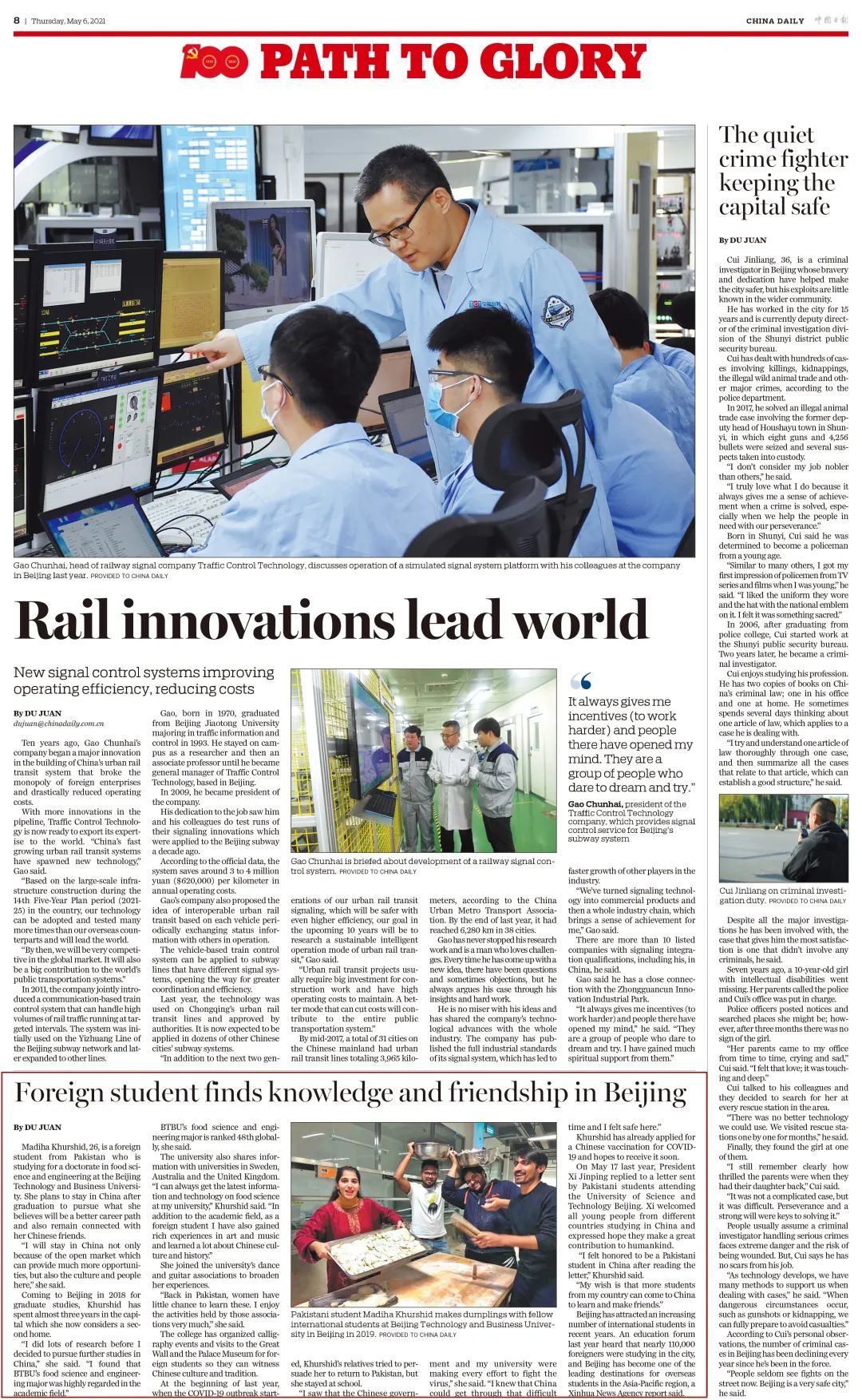 今年,是中国共产党建党100周年,《中国日报》(China Daily)开辟系列专栏"PATH TO GLORY",集中展示全国各省、自治区、直辖市或者省区市在中国共产党的坚强领导下取得的巨大变化和卓越成就。今日,此专栏第一期以四连版报道北京,其中,人物版的故事生动展现了北京作为国际大都市的兼容并包和开放多元。