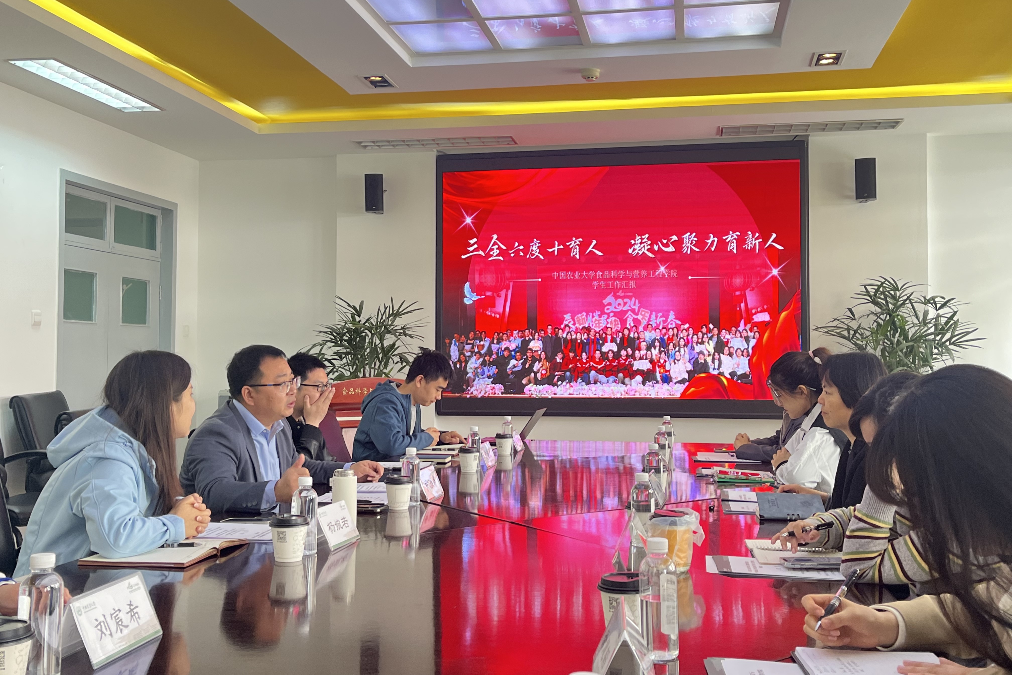 为促进公司辅导员队伍高质量发展,助力公司“双一流”学科创建,4月8日,在公司党委副书记熊慧的带领下,十大正规买足球网站一行7人前往中国农业大学食品科学与营养工程公司交流学习。该公司党委副书记尹淑涛、学工办主任杨婉若、副主任黄德政、辅导员刘宸希、马季陶、徐飞平和王梦雯热情接待了调研团,并参加了交流活动。