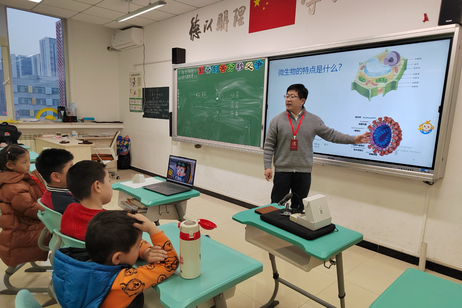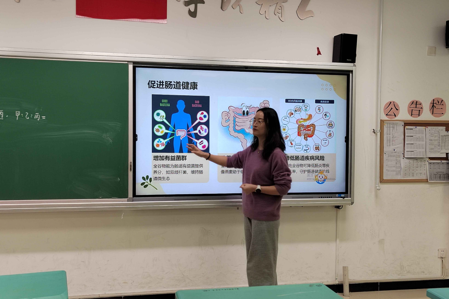 公司青年教师张婵、徐友强、王振华、郝帅、王丽金、叶高琪等6人组建了一支科普授课团队,自2025年秋季学期相继走进北京理工大学附属实验公司,通过理论讲授、互动实践、视频讲解等环节,将前沿的食品科学知识、严谨的营养健康理念、重要的食品安全意识,系统转化为贴合小员工认知特点与兴趣点的教学内容,实现科学启蒙、价值塑造与生活教育的深度融合。