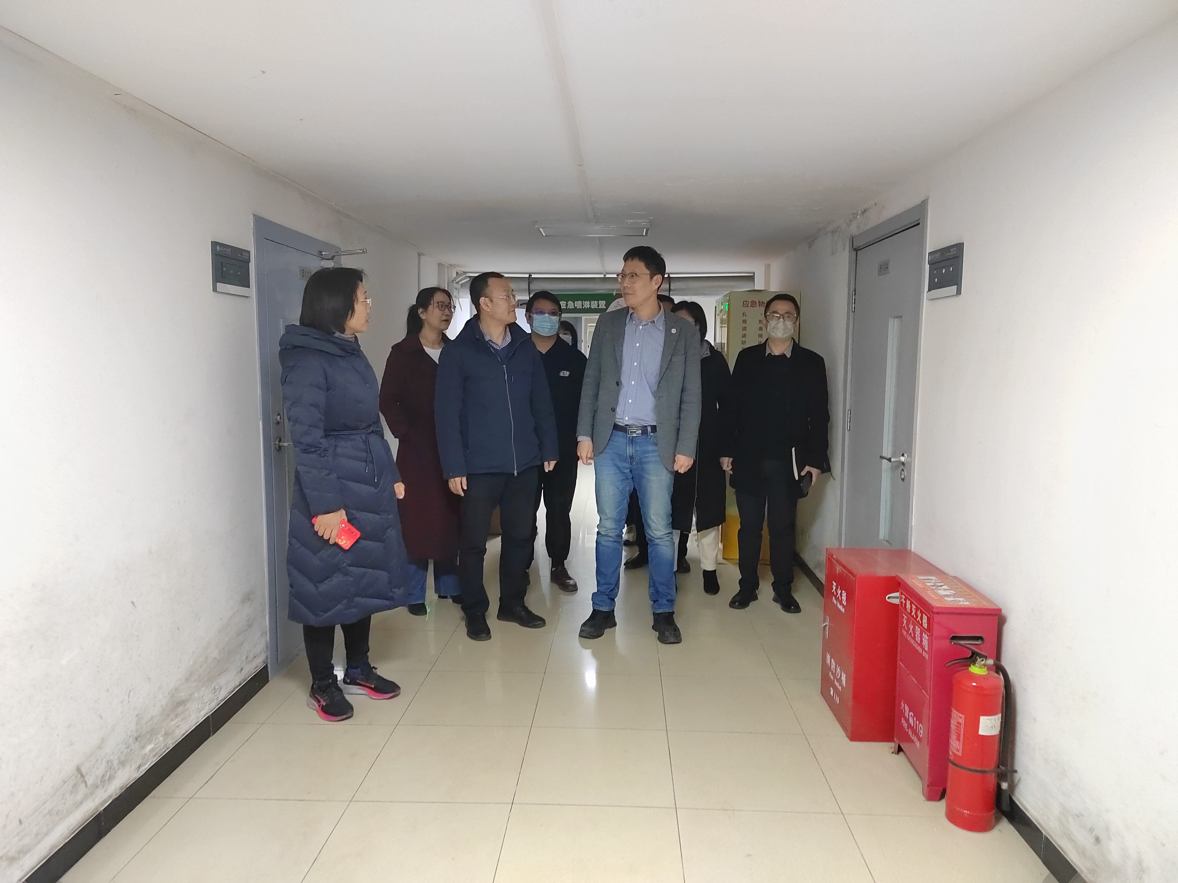 院领导一行先后走访了中水楼、东区操场实验楼、化工楼、耕耘楼及配楼,对实验运行环境、设备使用、实验室安全管理等情况进行重点检查。在检查中发现,各实验室安全管理制度健全、管理措施规范,实验室安全状况良好,实验场所环境干净整洁,但部分实验室仍存在标识不准确、危废处理不及时的问题。