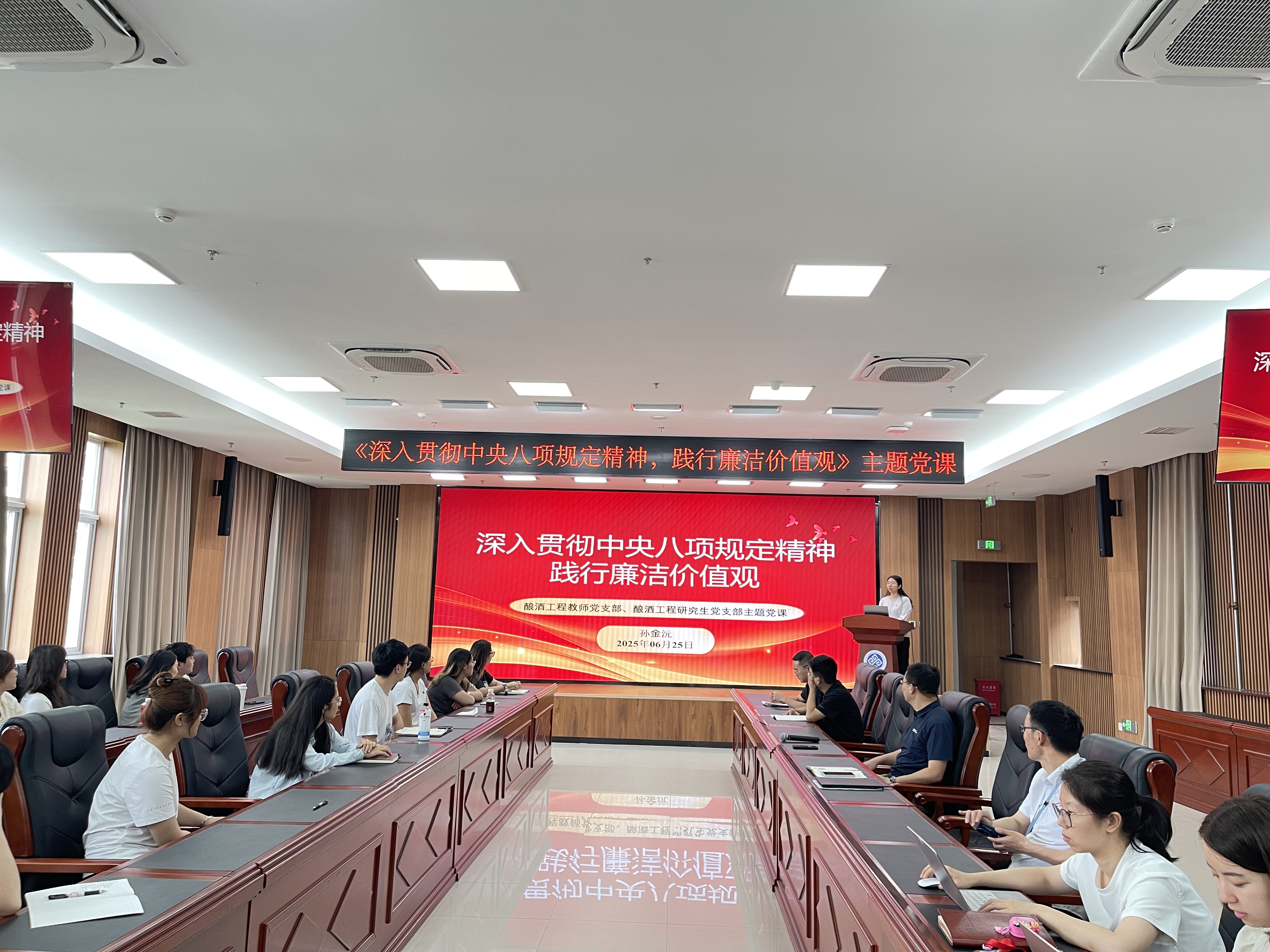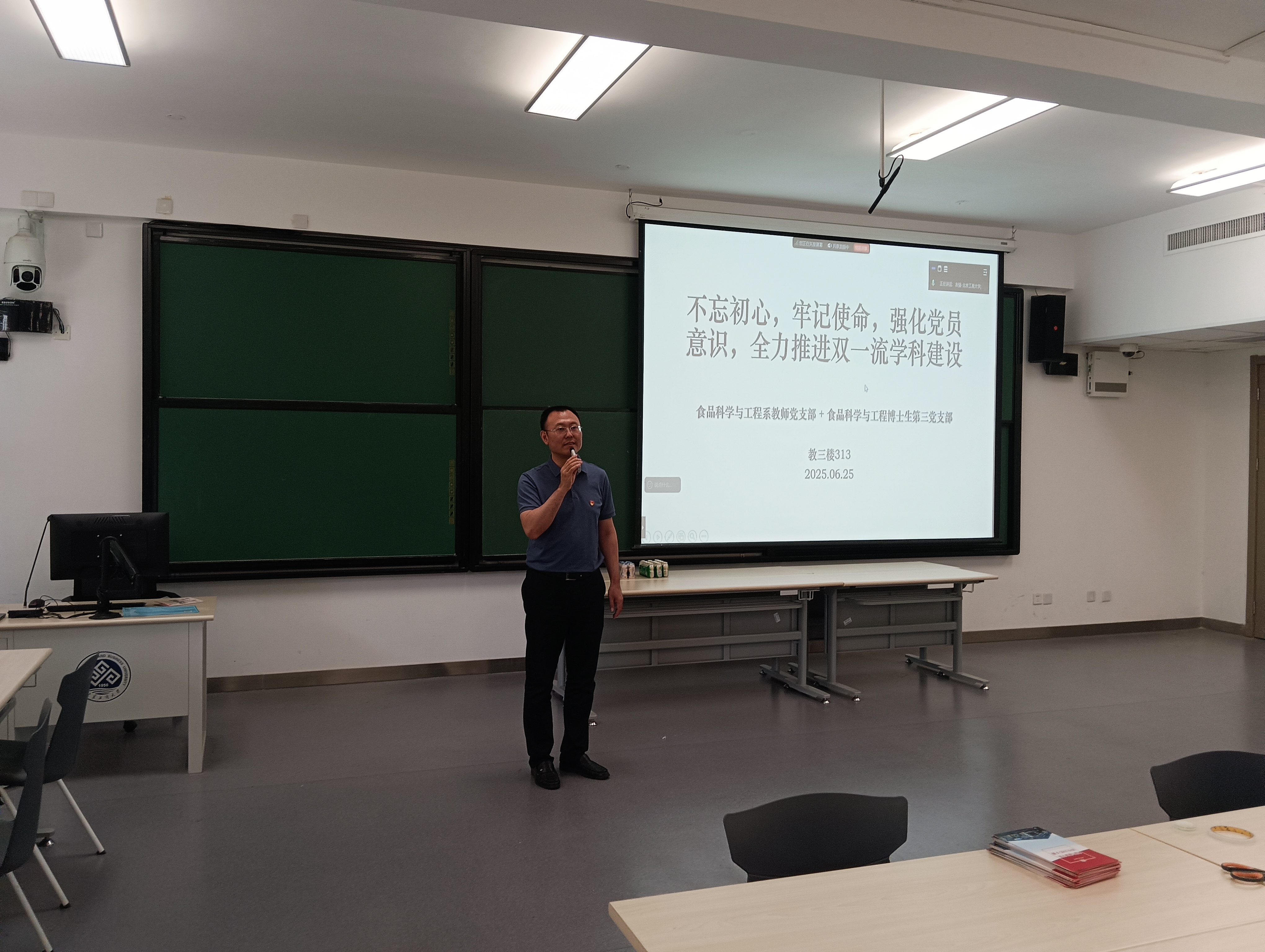 6月25日,经理王彦波为食品科学与工程系教师党支部和食品科学与工程博士生第三党支部讲授专题党课,重强调了“三个结合”:将初心使命与立德树人根本任务紧密结合,明确为党育人、为国育才的职责;将强化党员意识与勇担团队建设重任紧密结合,要求党员在“双一流”建设中发挥先锋模范作用;将落实中央八项规定精神与营造清正学术生态紧密结合,特别指出科研经费规范使用、师德师风建设是公司健康发展的基石,必须常抓不懈。